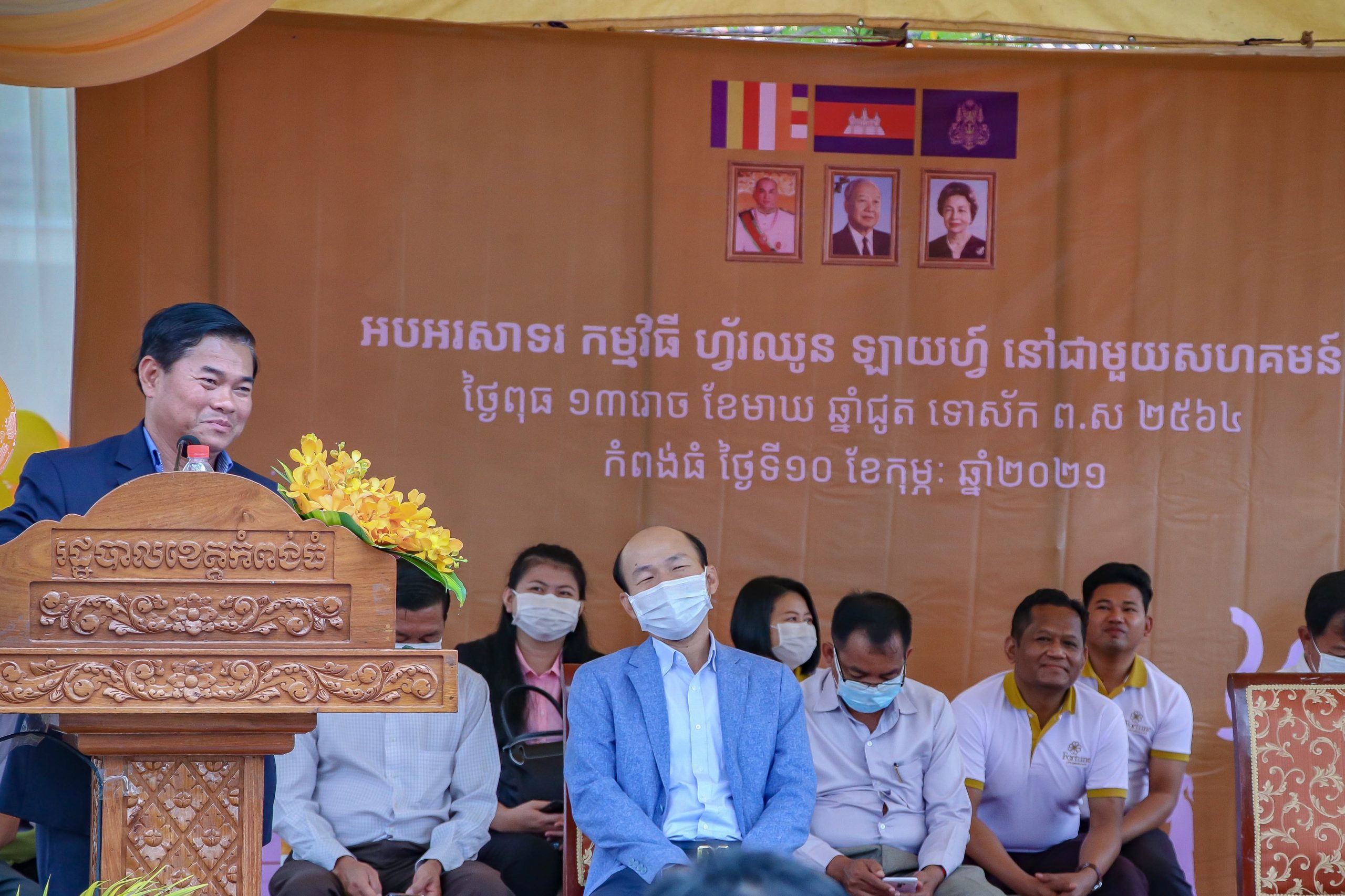 ឯកឧត្ដម ព្រឹម រដ្ឋា អភិបាលរងនៃគណៈអភិបាលខេត្តកំពង់ធំ ដែលជាតំណាងដ៏ខ្ពង់ខ្ពស់របស់ឯកឧត្ដមអភិបាលខេត្ត បានមានប្រសាសន៍ថា ខេត្តកំពង់ធំសូមស្វាគមន៍យ៉ាងកក់ក្ដៅចំពោះវត្តមានរបស់ក្រុមហ៊ុនធានារ៉ាប់រងអាយុជីវិត ហ្វ័រឈូន ឡាយហ្វ៍ នៅក្នុងខេត្តនេះ។ ក្រុមហ៊ុនមិនត្រឹមតែជួយបង្កើតការងារដល់ប្រជាជនតាមមូលដ្ឋានប៉ុណ្ណោះទេ ថែមទាំងបង្កីននូវសុខមាលភាព សេចក្តីសុខផ្លូវចិត្ត និងសុវត្ថិភាពហិរញ្ញវត្ថុដល់ក្រុមគ្រួសារកម្ពុជាផងដែរ។