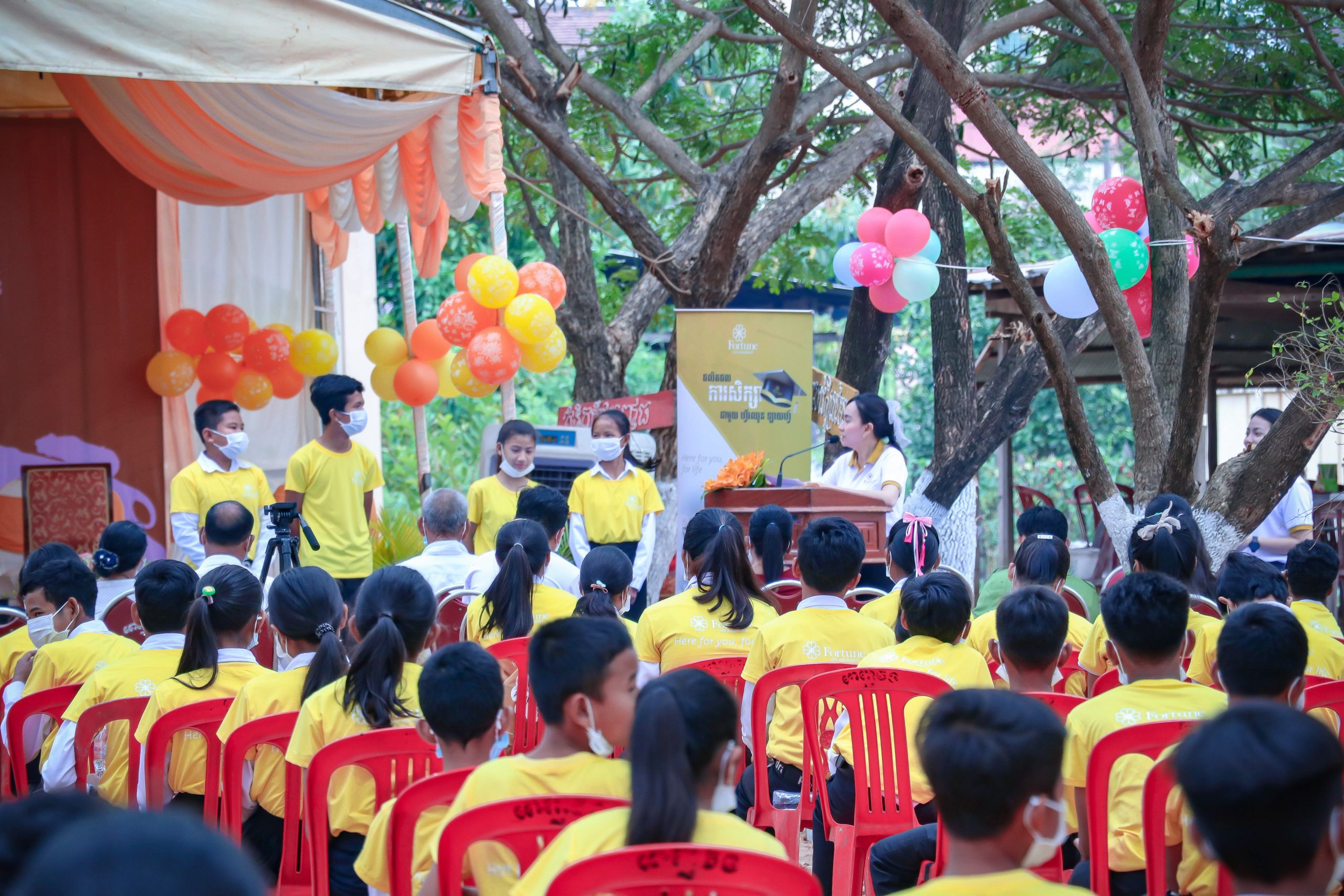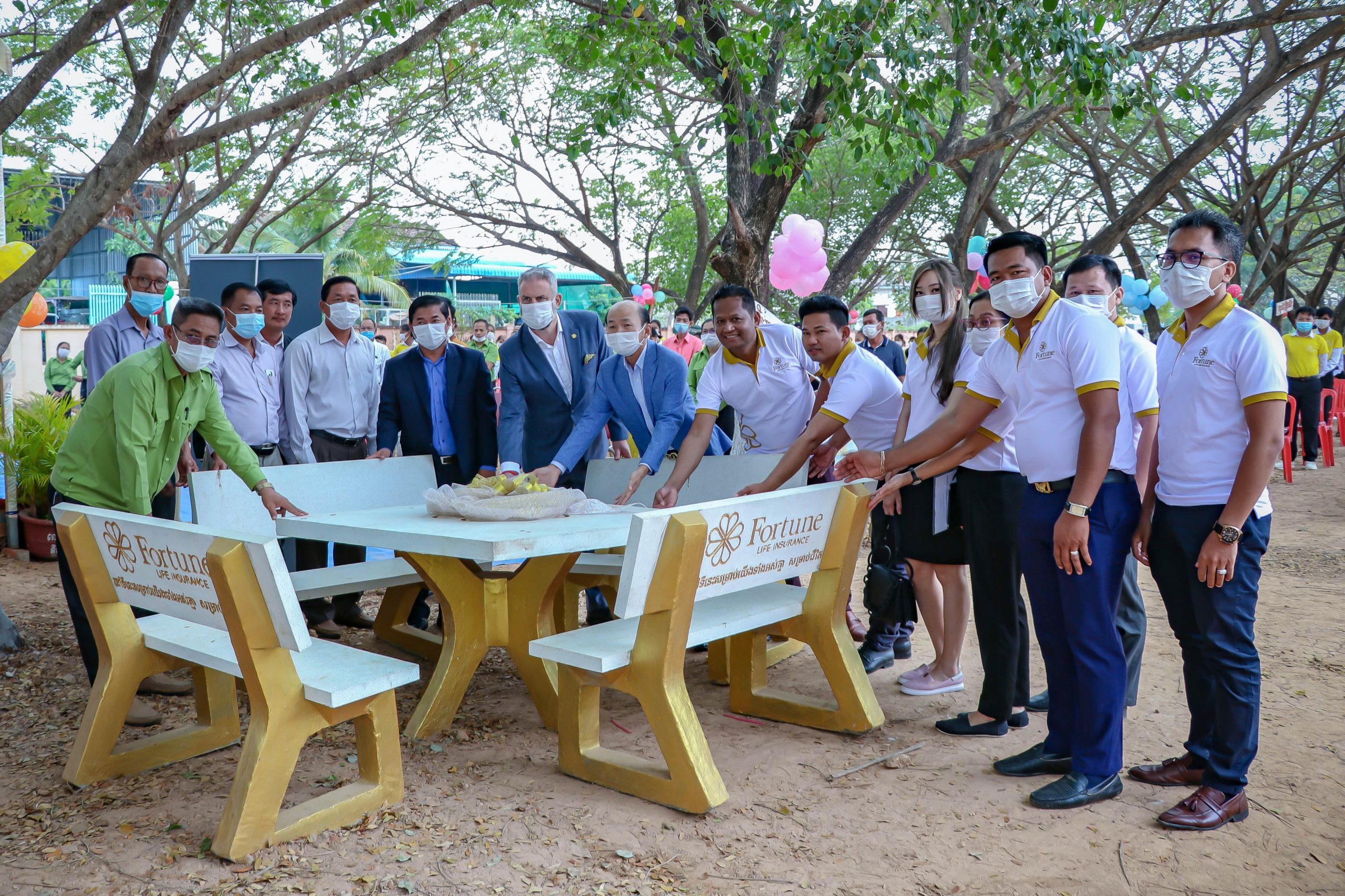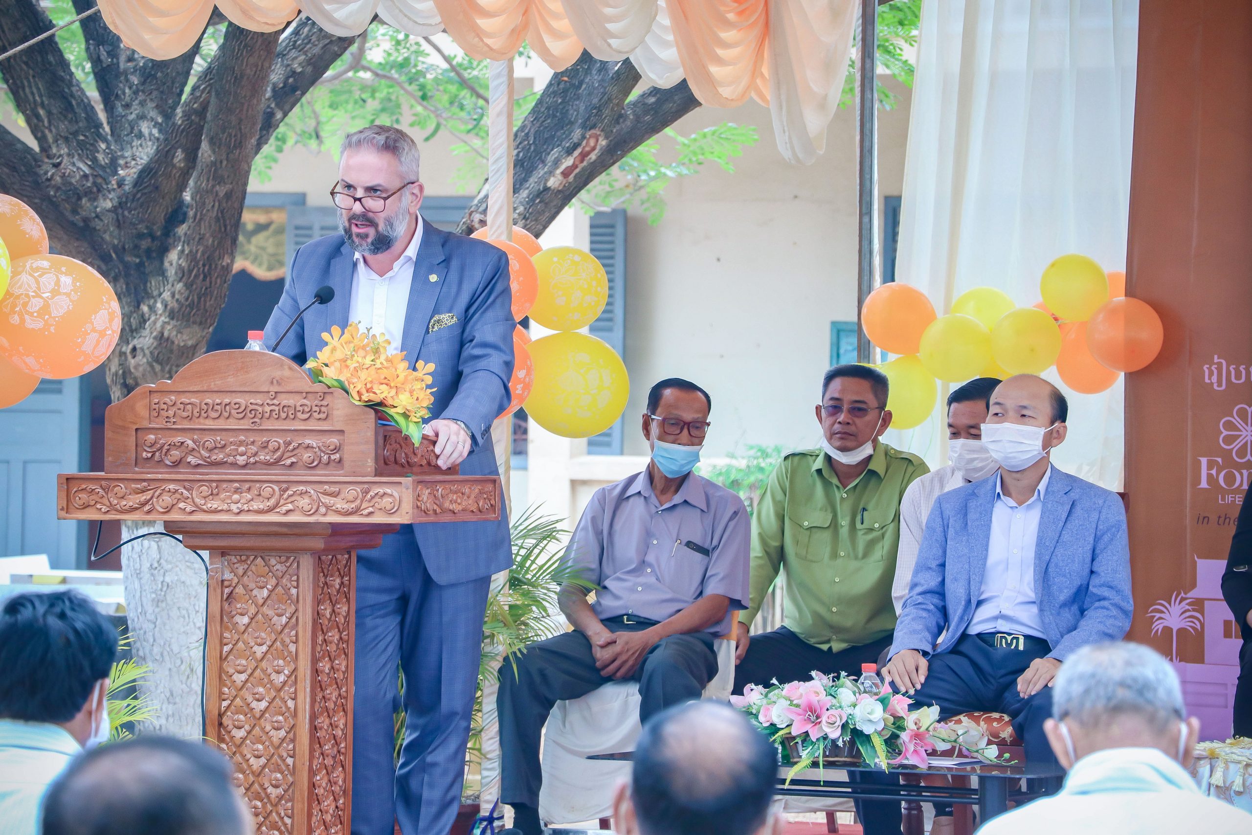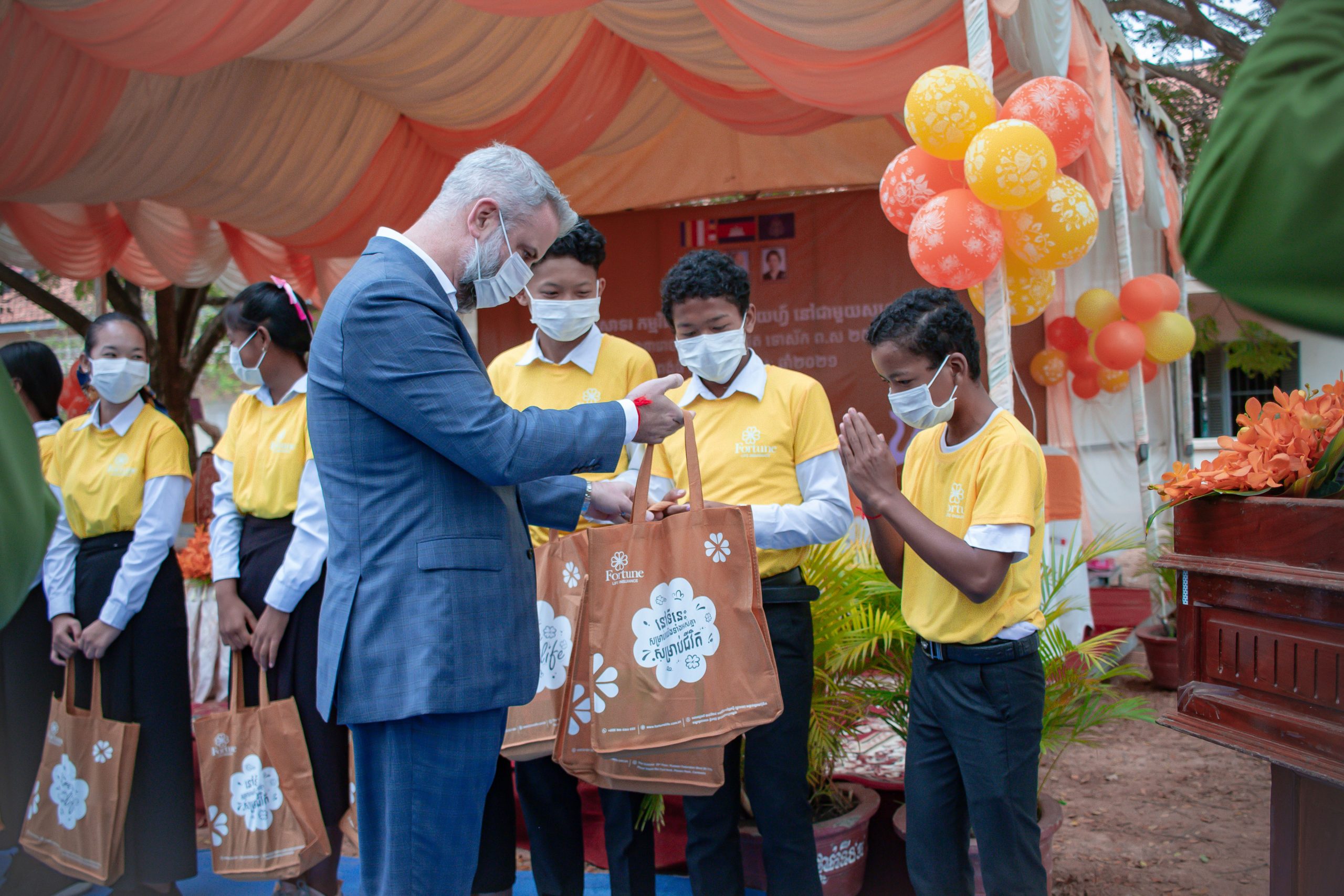 លោក Dominick Williams អគ្គនាយកប្រតិបត្តិរបស់ក្រុមហ៊ុន ហ្វ័រឈូន ឡាយហ្វ៍ បានមានប្រសាសន៍ថា“ គោលបំណងនៃ“កម្មវិធី ហ្វ័រឈូន ឡាយហ្វ៍ នៅជាមួយសហគមន៍” គឺដើម្បីជួយឲ្យសហគមន៍ក្នុងមូលដ្ឋានមានកន្លែងរស់នៅ និងធ្វើការប្រសើរជាងមុន ហើយកន្លែងដែលត្រូវចាប់ផ្តើមដ៏ល្អមុនគេគឺសាលារៀននៅខេត្តកំពង់ធំ” ។ “ ការជួយដល់កុមារឲ្យមានលទ្ធភាពក្នុងការចាប់ផ្តើមសិក្សាគឺពិតជាមានសារៈសំខាន់ណាស់។ ខ្ញុំសង្ឃឹមថាការឧបត្ថម្ភរបស់ពួកយើងអាចចូលរួមចំណែកក្នុងការលើកកម្ពស់ការសិក្សា និងអនាគតសិស្សានុសិស្សក៏ដូចជាលើកកម្ពស់ការអភិវឌ្ឍន៍សហគមន៍នៅក្នុងខេត្តកំពង់ធំ”។