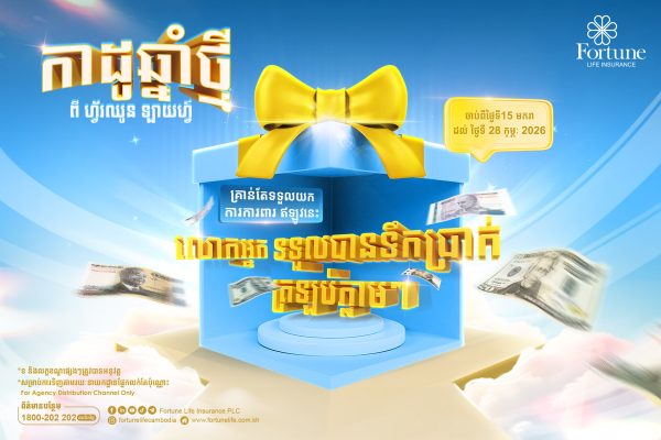 អតិថិជននឹងទទួលបានកាដូទឹកប្រាក់ត្រឡប់ 20ដុល្លារ ភ្លាមៗ ដោយគ្រាន់តែប្រើប្រាស់ផលិតផលណាមួយរបស់ ហ្វ័រឈូន ឡាយហ្វ៍ និងបង់បុព្វលាភធានារ៉ាប់រងលើកដំបូងចាប់ពី 800 ដុល្លារ ឡើងទៅ។ ការពារហិរញ្ញវត្ថុសម្រាប់មនុស្សជាទីស្រឡាញ់របស់លោកអ្នក ជ្រើសរើស ហ្វ័រឈូន ឡាយហ្វ៍ សក្តិសមបំផុត 👨👩👧👦🥰
