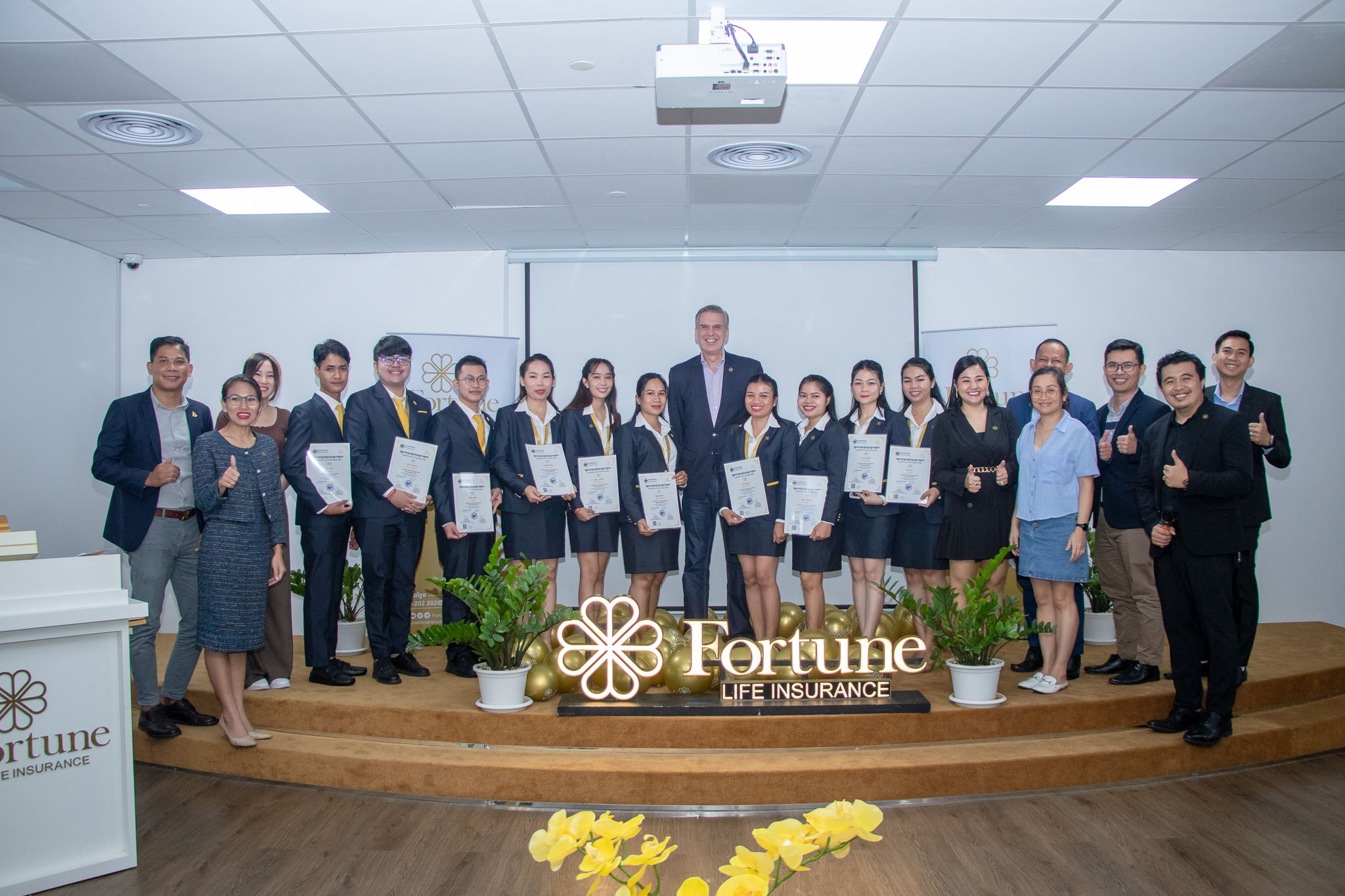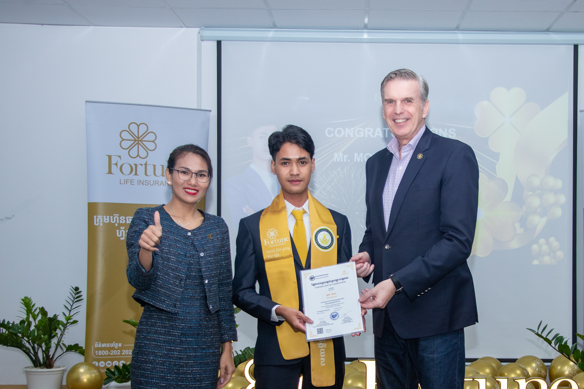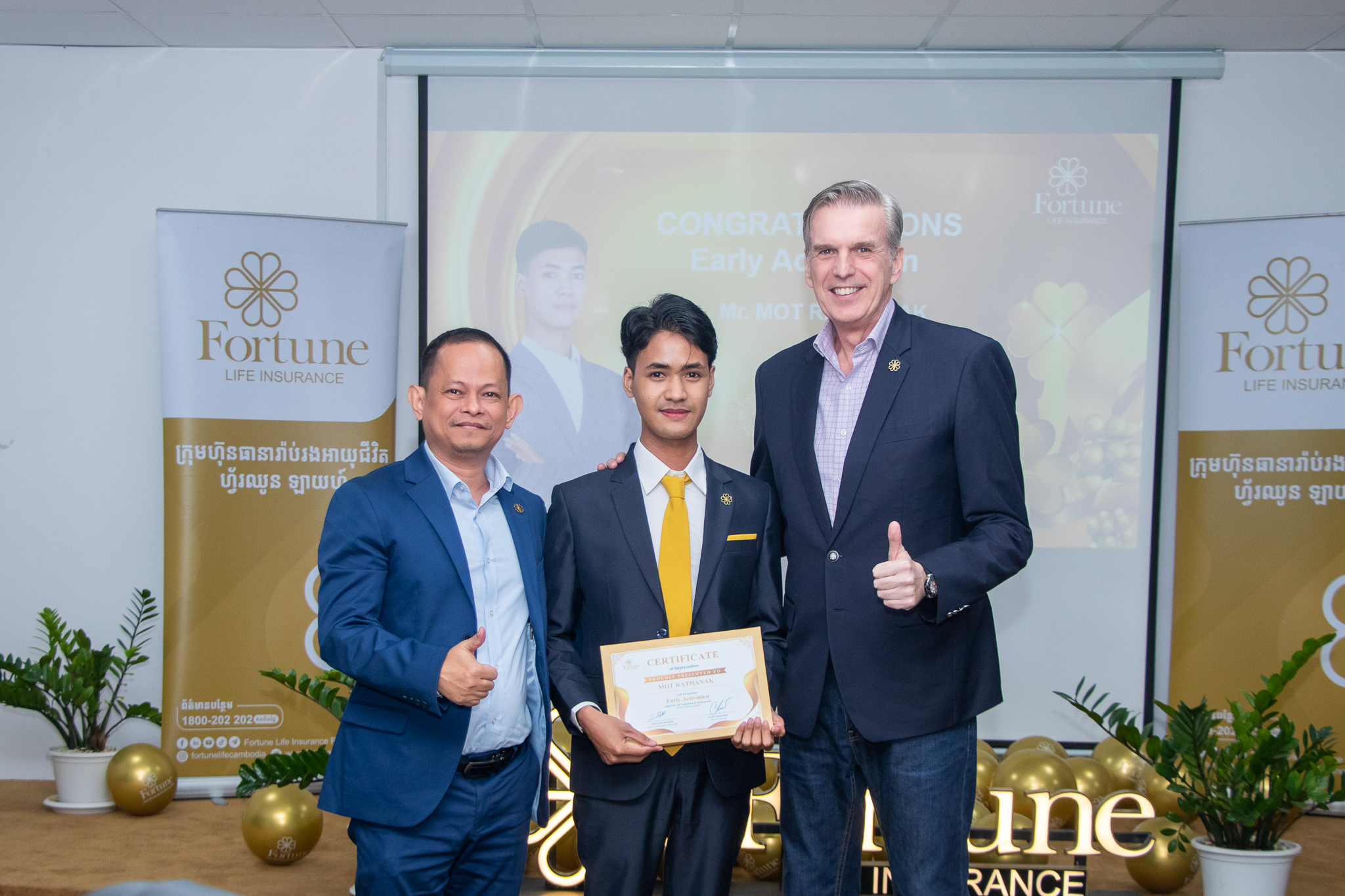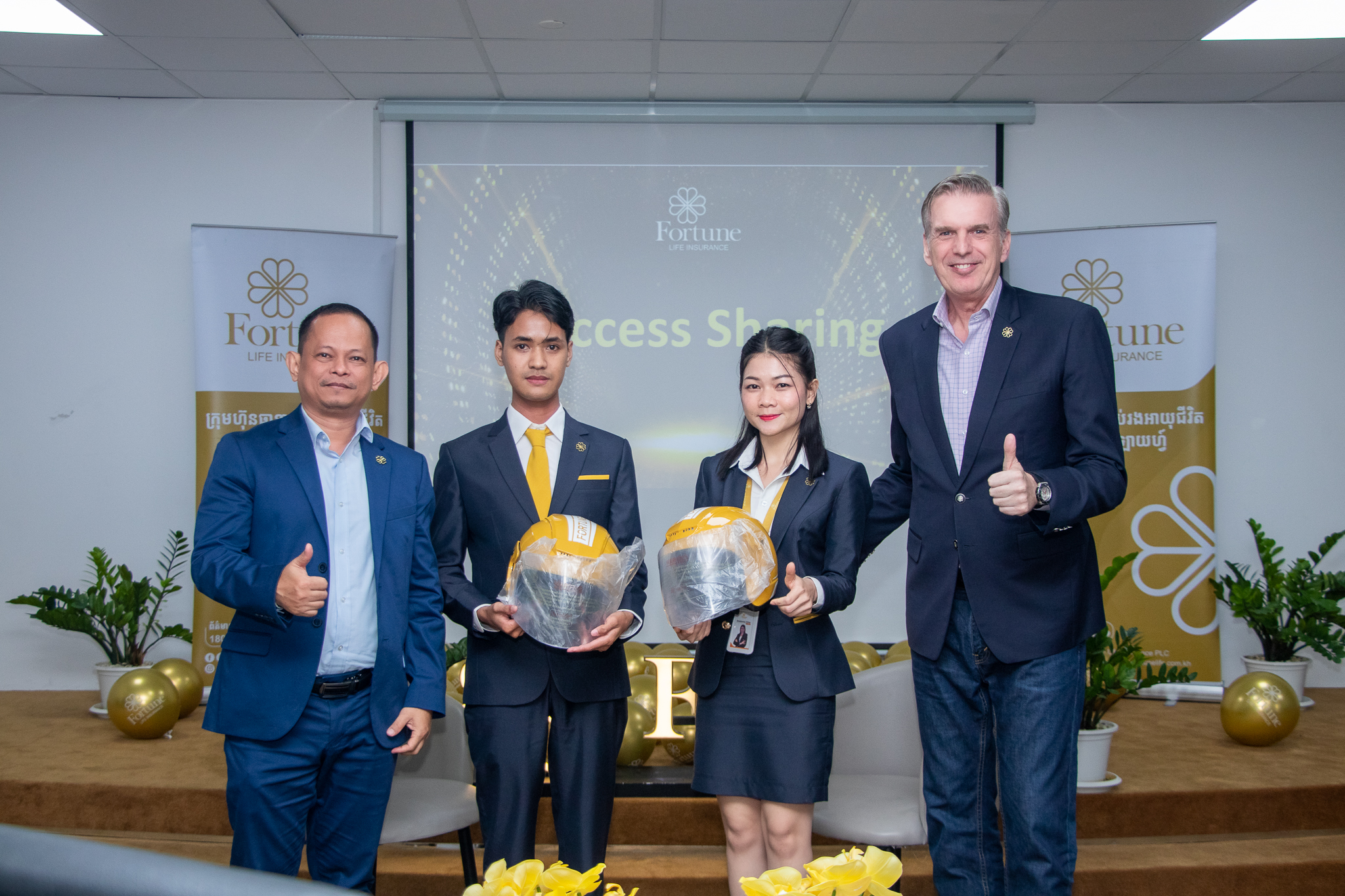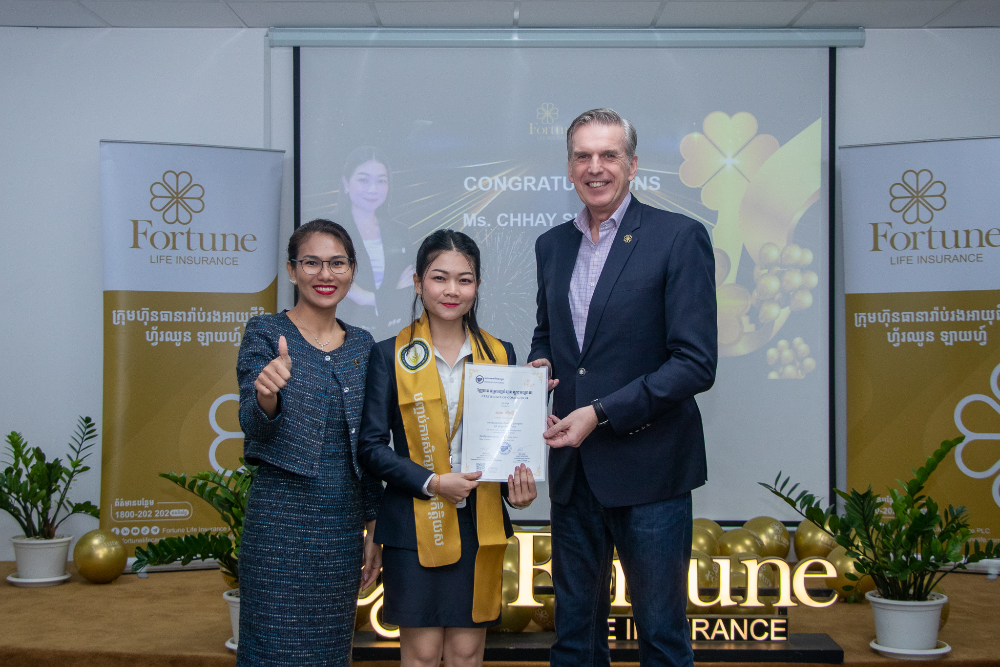 នារសៀលថ្ងៃសុក្រ ទី៥ ខែកក្កដា ឆ្នាំ២០២៤ ម្សិលមិញនេះ ក្រុមហ៊ុនធានារ៉ាប់រងអាយុជីវិត ហ្វ័រឈូន ឡាយហ្វ៍ បានរៀបចំកម្មវិធីអបអរសាទរជូនដល់បុគ្គលិកប្រឹក្សាធានារ៉ាប់រងអាយុជីវិតទាំង១០រូប ដែលបានបញ្ចប់ដោយជោគជ័យនូវវគ្គបណ្តុះបណ្តាលស្តីពីមូលដ្ឋានគ្រឹះធានារ៉ាប់រងពីសមាគមធានារ៉ាប់រងកម្ពុជា ក្រោមវត្តមានលោកអគ្គនាយក Jan Arend Wes និងមានការចូលរួមពីថ្នាក់ដឹកនាំប្រចាំនាយកដ្ឋាននីមួយៗ រួមជាមួយបុគ្គលិកជាច្រើនរូបរបស់ក្រុមហ៊ុន ហ្វ័រឈូន ឡាយហ្វ៍ ដើម្បីជាសក្ខីភាពនៅក្នុងកម្មវិធីដ៏ពិសេសនេះ។