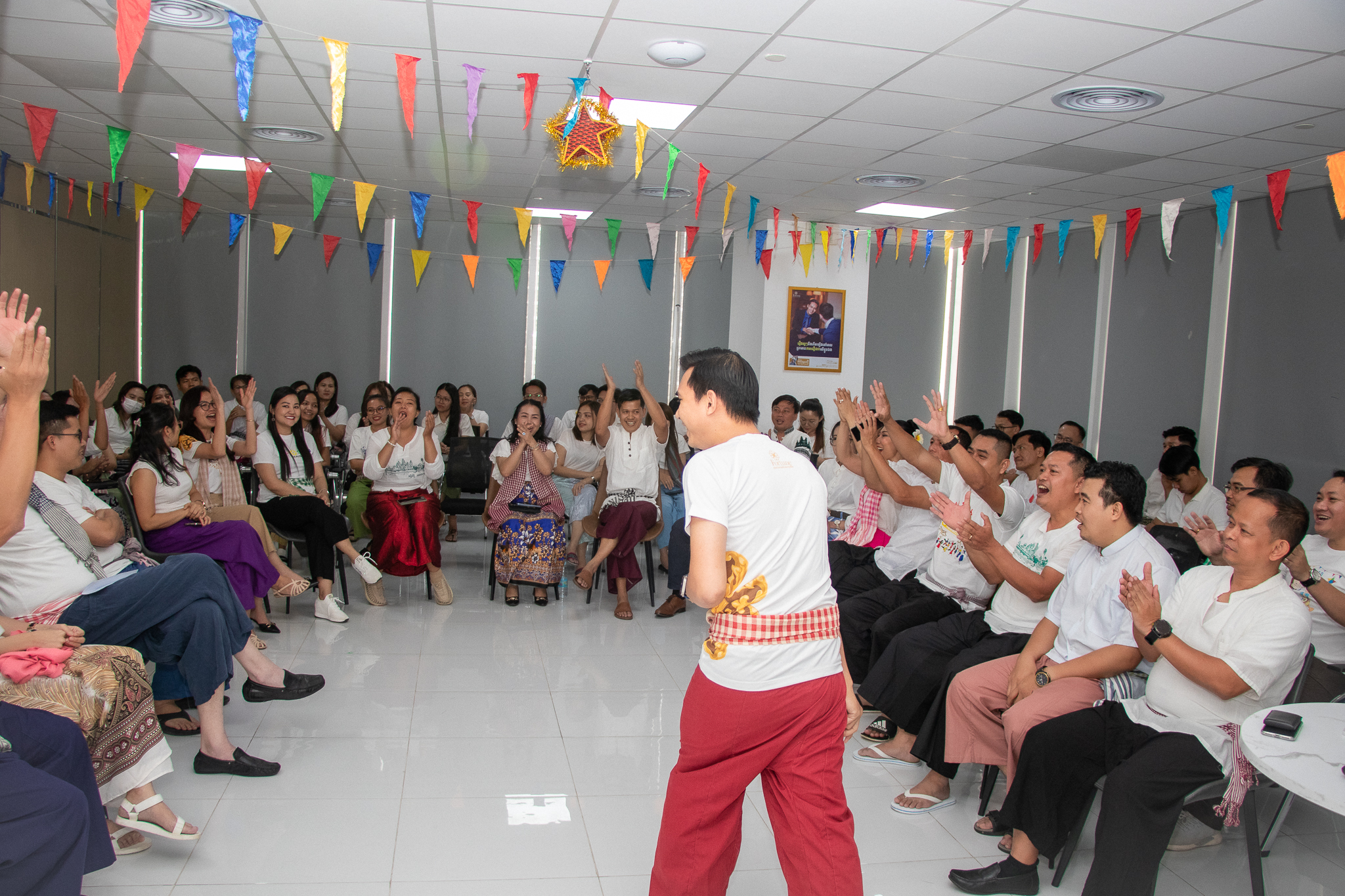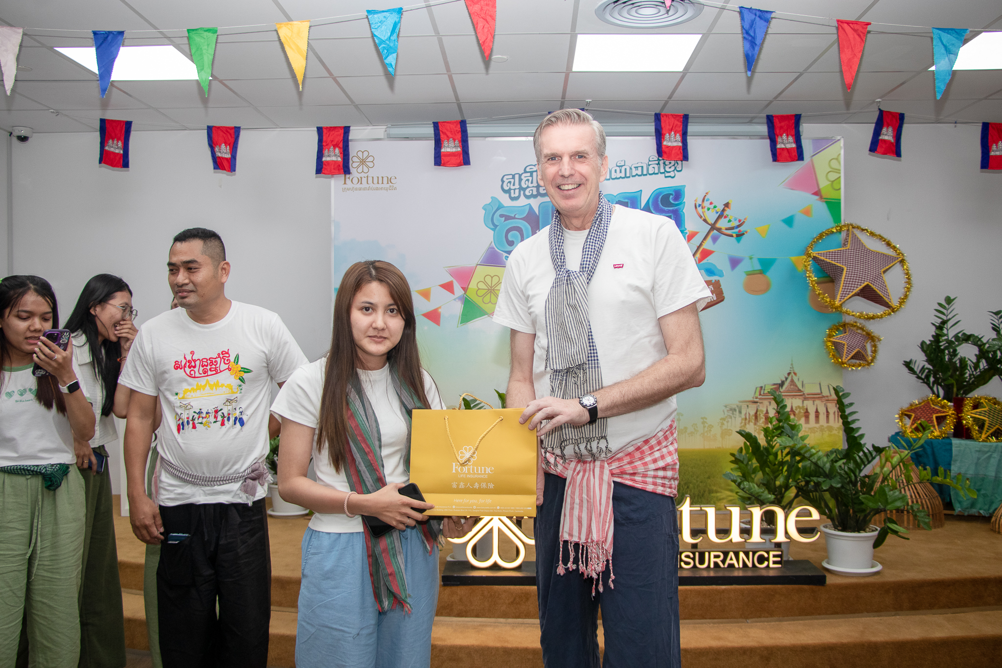 កាលពីថ្ងៃព្រហស្បតិ៍ ទី១១ ខែមេសា ឆ្នាំ២០២៤ កន្លងទៅថ្មីៗនេះ ក្រុមហ៊ុនធានារ៉ាប់រងអាយុជីវិត ហ្វ័រឈូន ឡាយហ្វ៍ បានរៀបចំកម្មវិធី Sharing Day ប្រចាំត្រីមាសទី១ ក្រោមវត្តមានលោកអគ្គនាយកប្រតិបត្តិ Jan Arend Wes រួមជាមួយថ្នាក់ដឹកនាំ និងបុគ្គលិកគ្រប់ជាន់ថ្នាក់ចូលរួម។ ក្នុងកម្មវិធីទាំងមូល ក៏មានការចែករំលែកនូវការវិវឌ្ឍនៃផ្នែកនីមួយៗរបស់ក្រុមហ៊ុនផងដែរ។ ឆ្លៀតក្នុងឱកាសដ៏ពិសេសនេះ ដើម្បីចូលរួមអបអរសាទរពិធីបុណ្យចូលឆ្នាំថ្មី ប្រពៃណីជាតិខ្មែរខាងមុខនេះ ក្រុមហ៊ុនធានារ៉ាប់រងអាយុជីវិត ហ្វ័រឈូន ឡាយហ្វ៍ ក៏បានរៀបចំកម្មវិធីកម្សាន្តសប្បាយៗបែបប្រពៃណីខ្មែរ អមជាមួយកម្មវិធីឆ្លើយសំនួរយករង្វាន់ ហើយនៅចុងកម្មវិធីបានរៀបចំអាហារពេលល្ងាចជួបជុំគ្រួសារ ហ្វ័រឈូន ឡាយហ្វ៍ ដ៏ឆ្ងាញ់ពិសារផងដែរ។