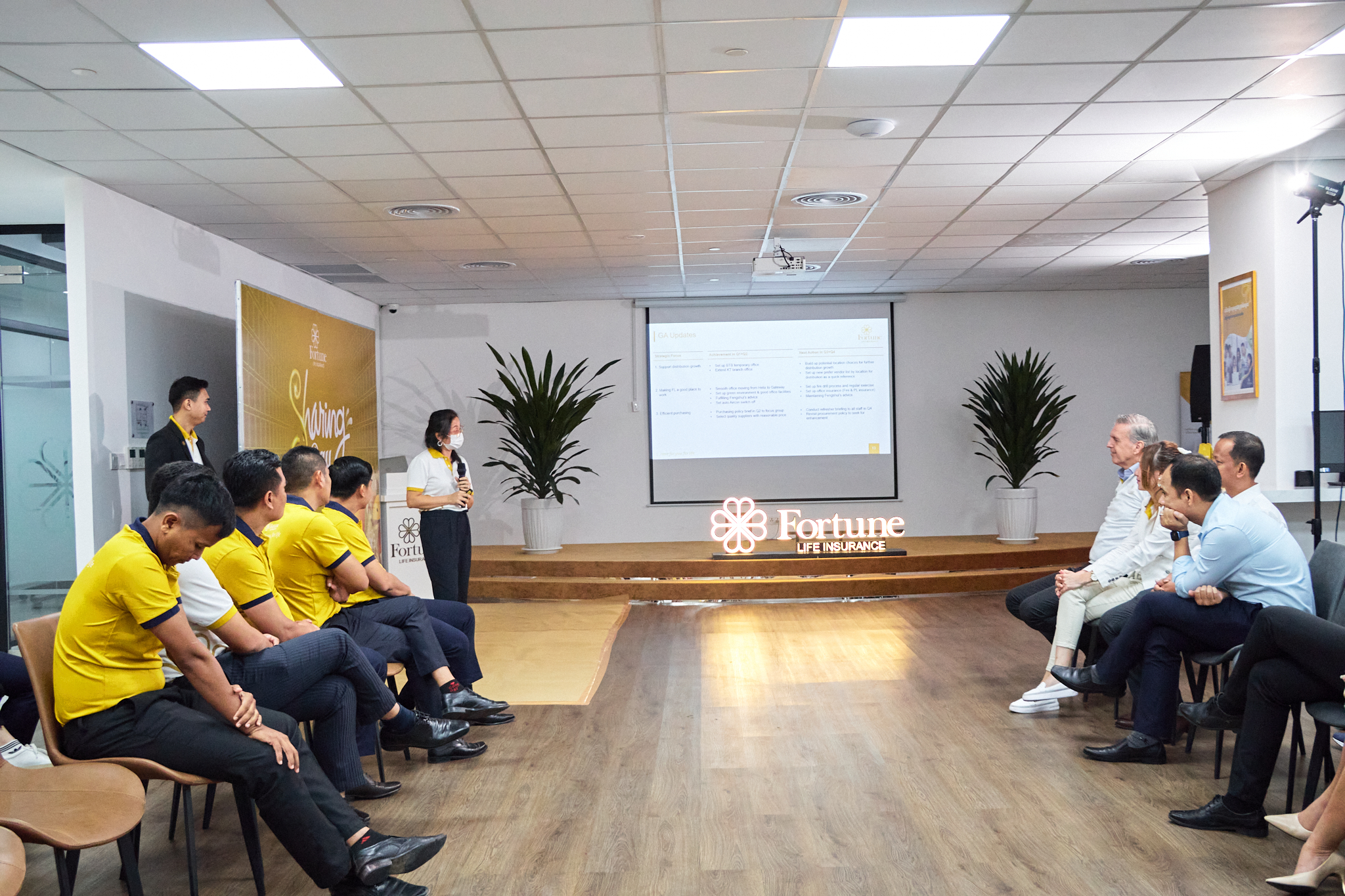 Sharing Day ជាកម្មវិធីជួបជុំរវាងថ្នាក់ដឹកនាំ និងបុគ្គលិកគ្រប់ផ្នែកទាំងអស់របស់ក្រុមហ៊ុន ក្នុងគោលបំណងទទួលព័ត៌មាន Update ថ្មីៗពីសំណាក់លោកអគ្គនាយកផ្ទាល់ និងថ្នាក់ដឹកនាំនៃផ្នែកនីមួយៗ។ បន្ថែមលើសនេះទៀត ក៏មានកម្មវិធីប្រគល់រង្វាន់ជ័យលាភីជូនដល់បុគ្គលិកឆ្នើម (Our Most Appreciated) ប្រចាំឆមាស រួមនឹងកម្មវិធីកម្សាន្តសប្បាយជាច្រើន ជាពិសេសកម្មវិធីពិសារអាហារពេលល្ងាចជុំគ្នាយ៉ាងសប្បាយរីករាយ។ បុគ្គលិកទាំងអស់ ប្តេជ្ញាចិត្តនឹងបន្តបេសកកម្មរៀងៗខ្លួន ដើម្បីផ្តល់នូវសុខុមាលភាពហិរញ្ញវត្ថុជូនបងប្អូនប្រជាជនកម្ពុជាទូទាំងប្រទេស។