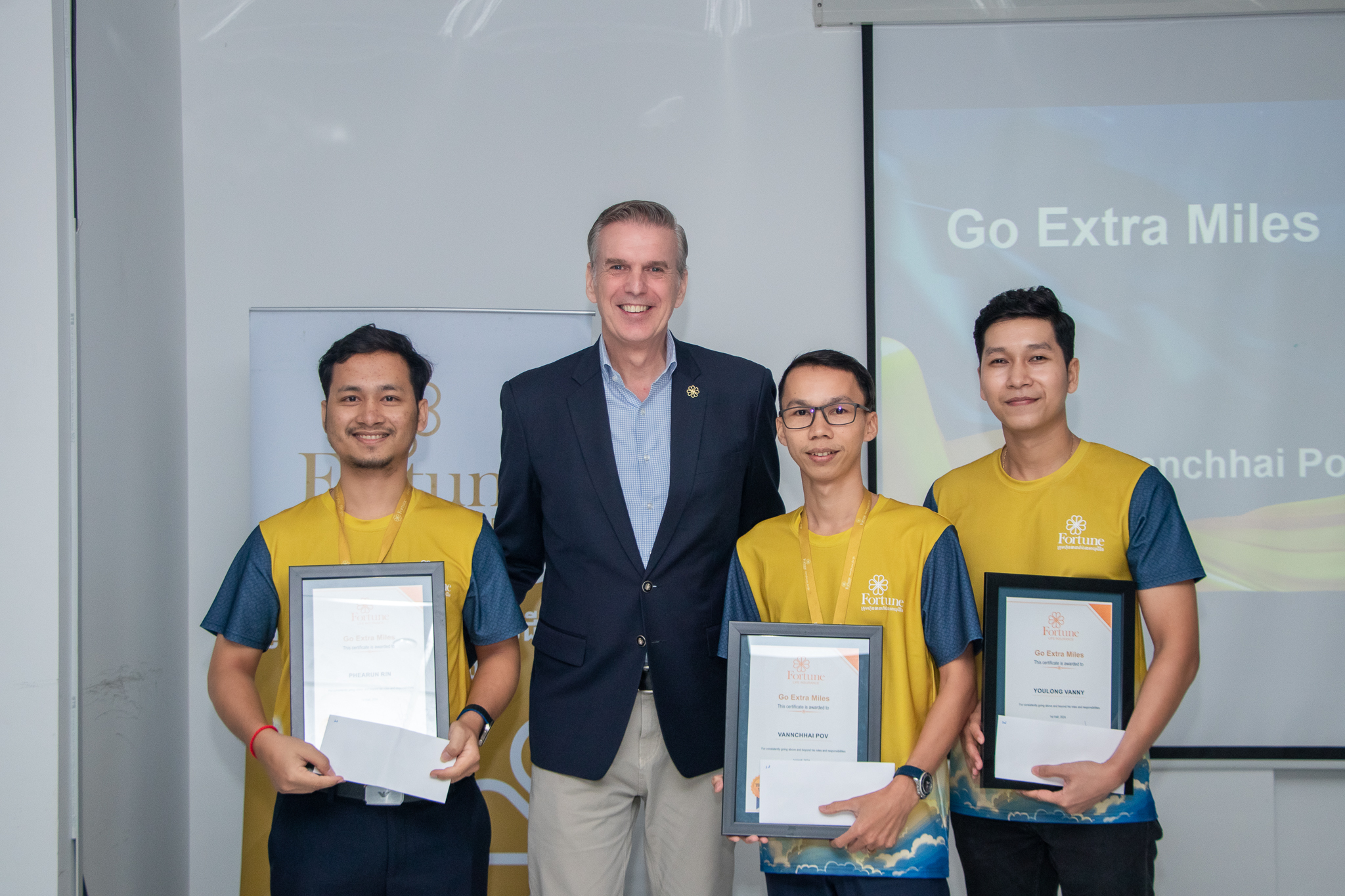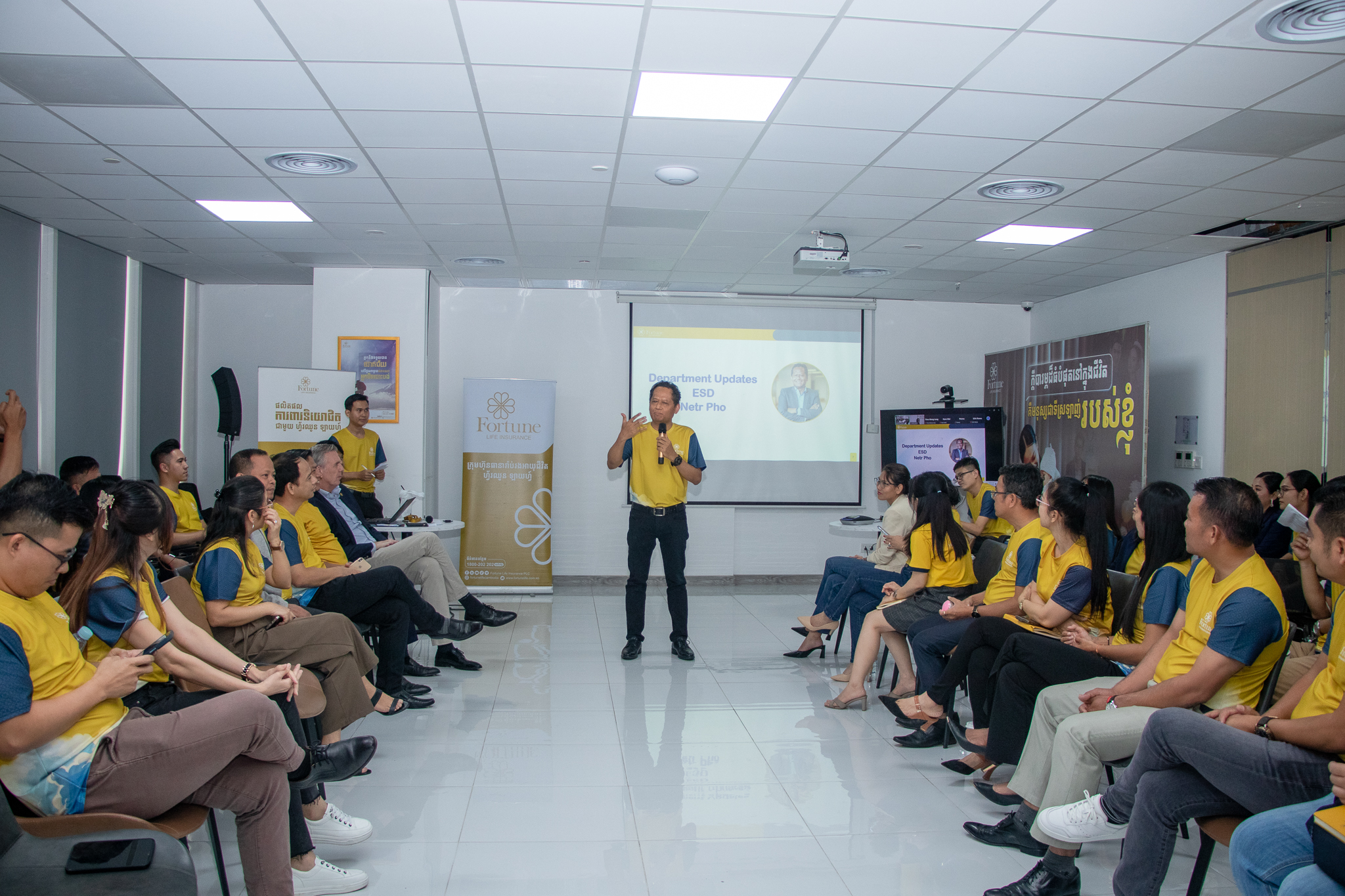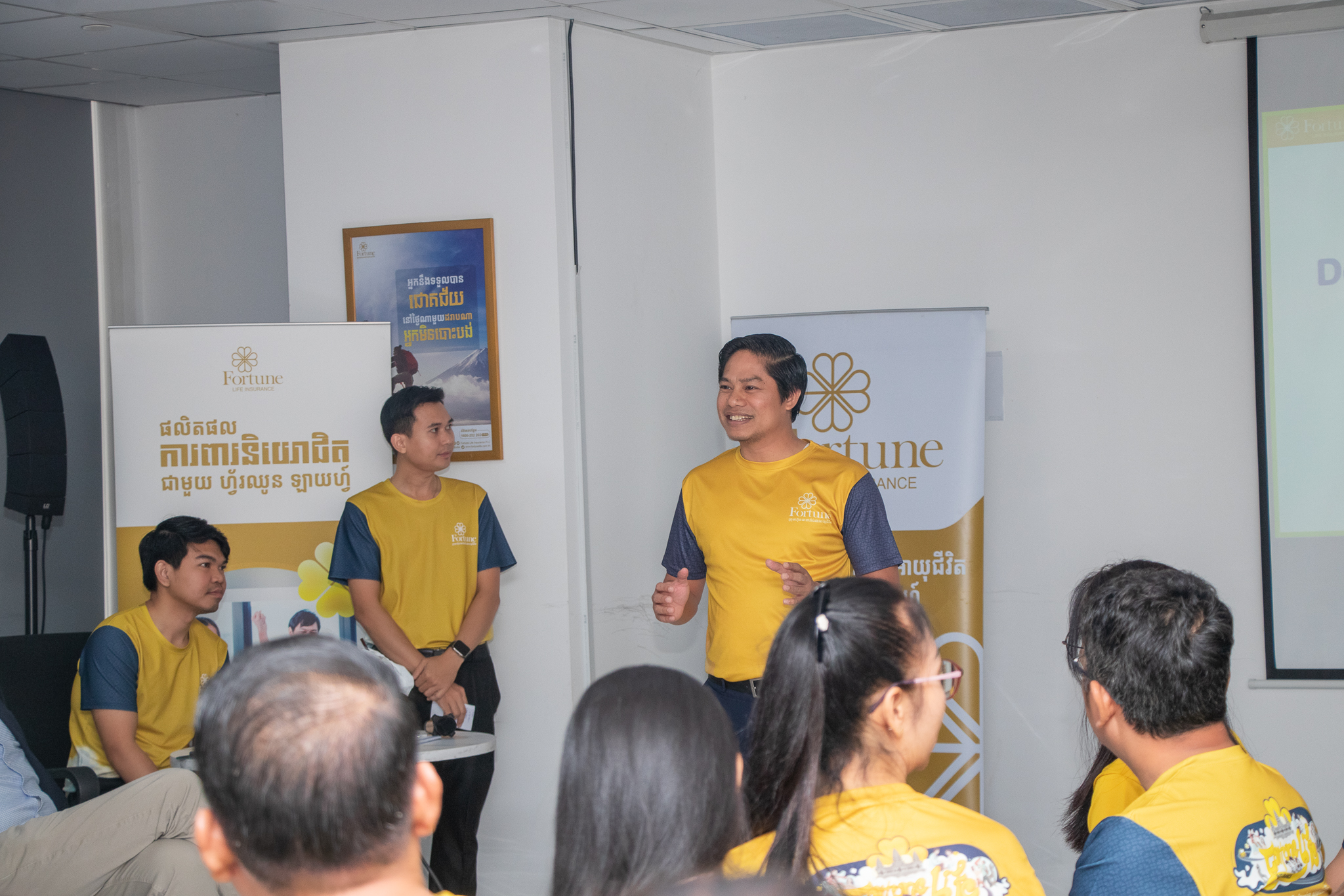 នាព្រឹកថ្ងៃពុធ ទី10 ខែកក្កដា ឆ្នាំ2024 នេះ ក្រុមហ៊ុនធានារ៉ាប់រងអាយុជីវិត ហ្វ័រឈូន ឡាយហ្វ៍ បានរៀបចំកម្មវិធី Sharing Day ក្នុងគោលបំណងចែករំលែកពីការវិវឌ្ឍរបស់ក្រុមហ៊ុនទាំងមូលក្នុងត្រីមាសទី1 និង ទី2 ក្រោមវត្តមានលោកអគ្គនាយក Jan Arend Wes អមជាមួយថ្នាក់ដឹកនាំប្រចាំផ្នែកលក់ទាំង3រូប បានបង្ហាញពីលទ្ធផល និងយុទ្ធសាស្រ្តក្នុងការសម្រេចផែនការសម្រាប់ឆ្នាំ2024។ បន្ថែមពីនេះទៀត កម្មវិធីអបអរសាទរបុគ្គលិកឆ្នើមទាំង 9រូប ប្រចាំត្រីមាសក៏បានរៀបចំឡើងក្នុងឱកាសដ៏ពិសេសនេះ។ គួរបញ្ជាក់ផងដែរថា បុគ្គលិកឆ្នើមម្នាក់ៗ ទទួលបានលិខិតសរសើរ និងរង្វាន់ជាសាច់ប្រាក់ ដែលនេះសបញ្ជាក់ពីការយកចិត្តទុកដាក់ពីក្រុមហ៊ុនទៅកាន់បុគ្គលិក ហើយនេះក៏ជាកាដូលើកទឹកចិត្តសម្រាប់ការខិតខំបំពេញការងារនាពេលកន្លងមក។