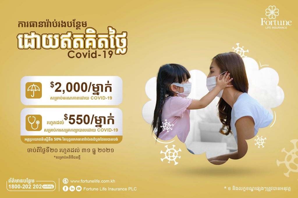 ក្រុមហ៊ុនធានារ៉ាប់រងអាយុជីវិត ហ្វ័រឈូន ឡាយហ្វ៍ សូមផ្តល់ជូនកញ្ចប់ការពារសុវត្ថិភាពពិសេសបន្ថែមដោយឥតគិតថ្លៃជូនអតិថិជនថ្មីដែលបានទិញបណ្ណសន្យារ៉ាប់រងពីថ្ងៃទី២០ រហូតដល់ ៣១ ខែធ្នូ ឆ្នាំ២០២១