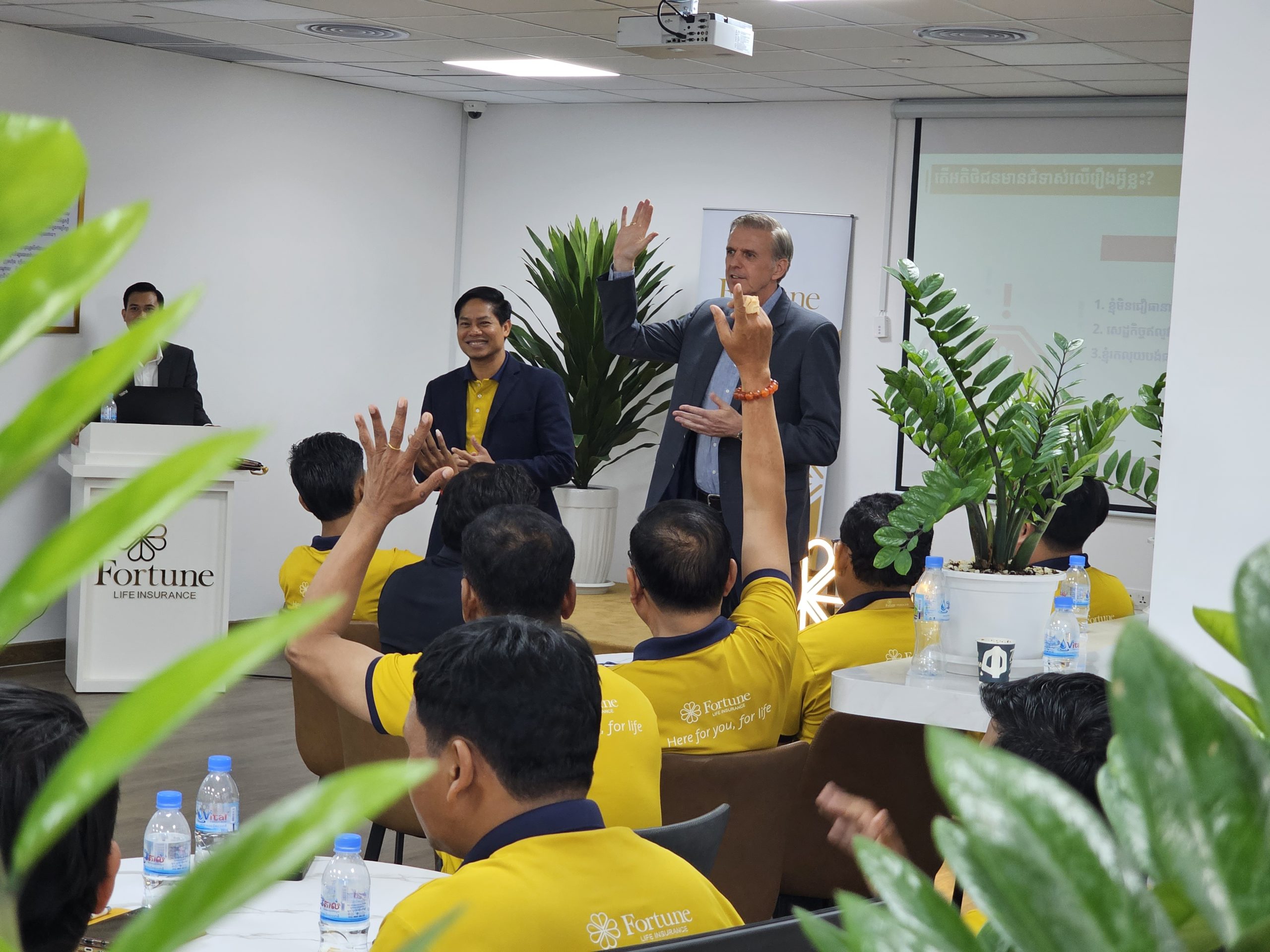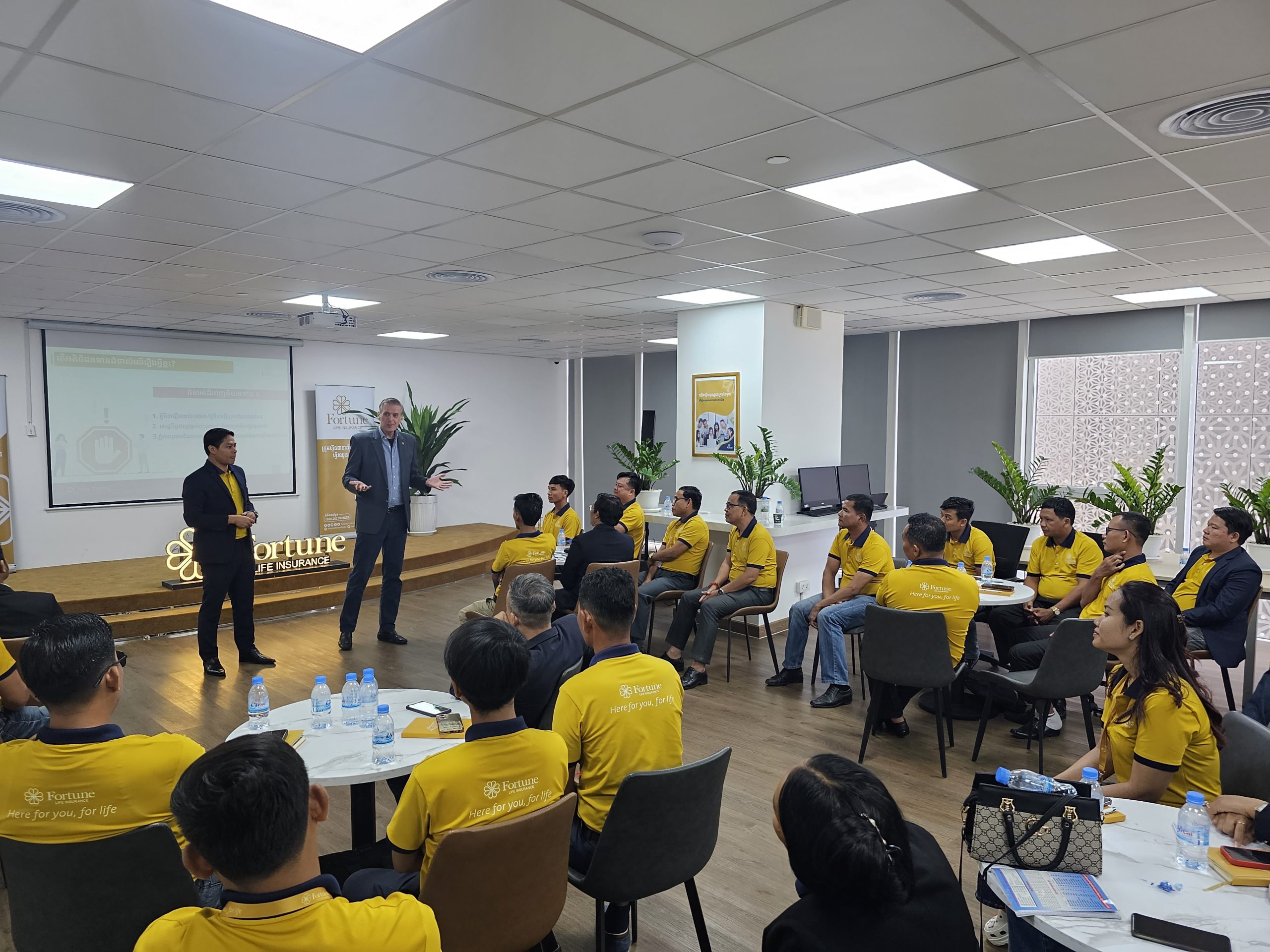 កាលពីពេលថ្មីៗនេះ ក្រុមហ៊ុនធានារ៉ាប់រងអាយុជីវិត ហ្វ័រឈូន ឡាយហ្វ៍ បានរៀបចំកិច្ចប្រជុំ និងវគ្គបណ្តុះបណ្តាល រវាងថ្នាក់ដឹកនាំផ្នែកលក់ ប្រធានផ្នែកលក់ជាន់ខ្ពស់ប្រចាំតំបន់ និង ប្រធានអាជីវកម្មប្រចាំតំបន់សំខាន់ៗទូទាំង២៥រាជធានីខេត្ត នៅការិយាល័យកណ្តាលស្ថិតក្នុងអគារដ៏ប្រណិត ឌឹហ្គេតវេយ៍ (The Gateway) កាន់តែពិសេសលោកអគ្គនាយកប្រតិបត្តិ Jan Arend Wes បានផ្តល់កិត្តិយសចូលរួមចែករំលែកពីយុទ្ធសាស្ត្រថ្មីៗ និងបទពិសោធន៍ពីសេវាធានារ៉ាប់រងអាយុជីវិត។ ជាក់ស្តែងកិច្ចប្រជុំ និងវគ្គបណ្តុះបណ្តាលនេះ គឺផ្តោតសំខាន់ទៅលើការអភិវឌ្ឍ ចំណេះ ជំនាញផ្នែកធានារ៉ាប់រងអាយុជីវិត និងសកម្មភាពចុះជួបអតិថិជនគោលដៅ ដើម្បីធានាបានថាការប្រឹក្សាផ្នែកហិរញ្ញវត្ថុប្រកបដោយគុណភាព និងប្រសិទ្ធិភាព។ បន្ថែមលើសនេះទៀត ក៏មានការចាប់រង្វាន់ និងចែកបណ្ណសរសើរជូនប្រធានផ្នែកលក់ជាន់ខ្ពស់ឆ្នើម និង ប្រធានអាជីវកម្មឆ្នើមផងដែរ។
