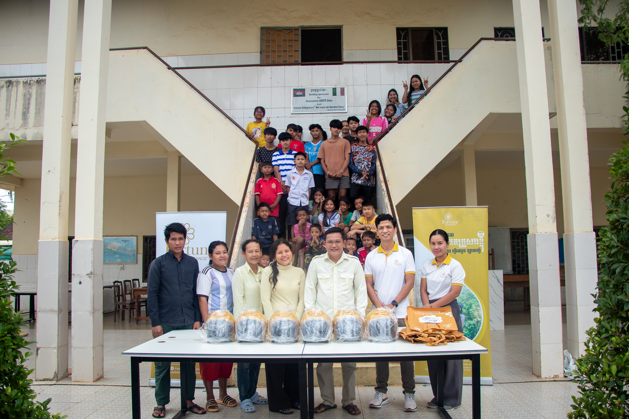 ក្រុមហ៊ុនធានារ៉ាប់រងអាយុជីវិត ហ្វ័រឈូន ឡាយហ្វ៍ បរិច្ចាគសម្ភារការិយាល័យទៅកាន់ មណ្ឌលកុមារកំព្រា បុរីកុមារ ខេត្តកំពង់ធំ
