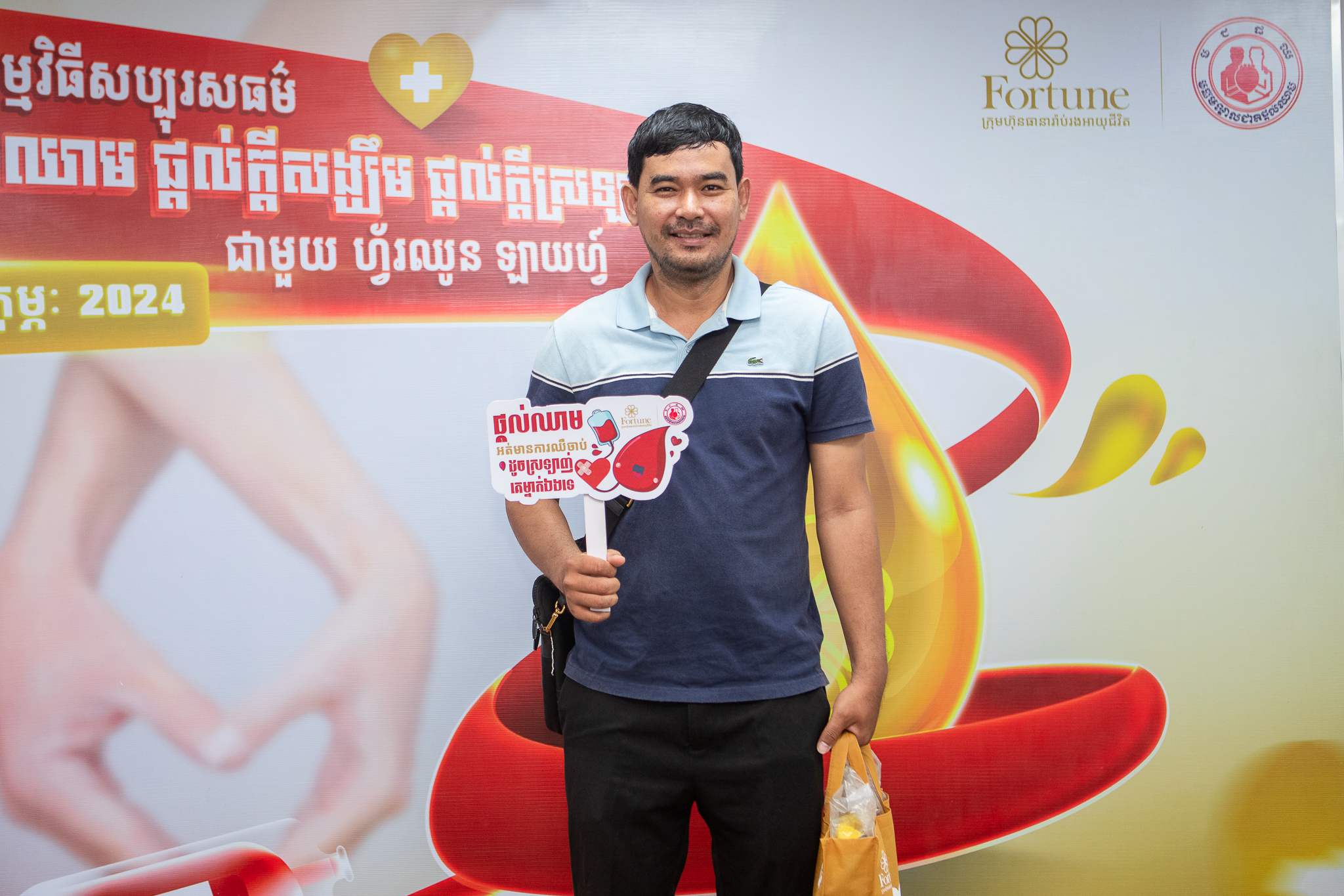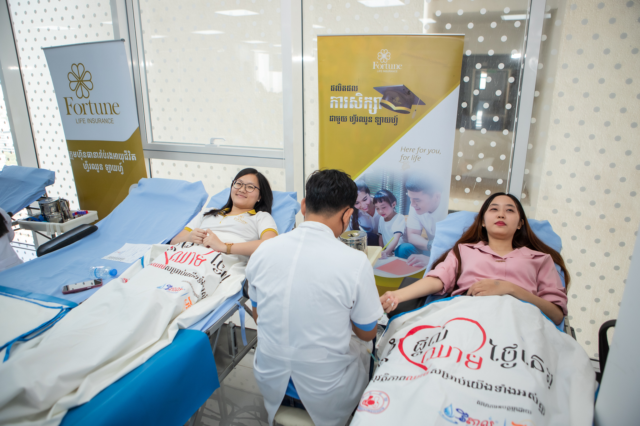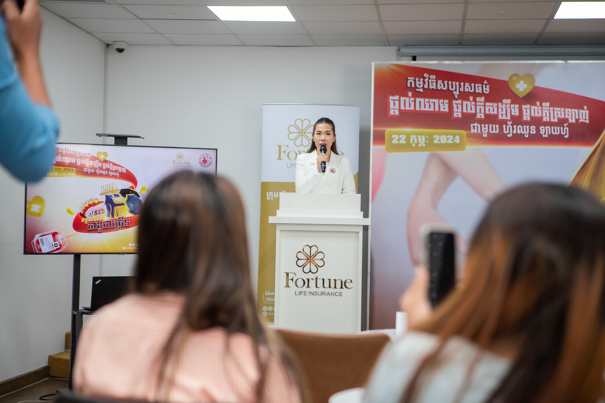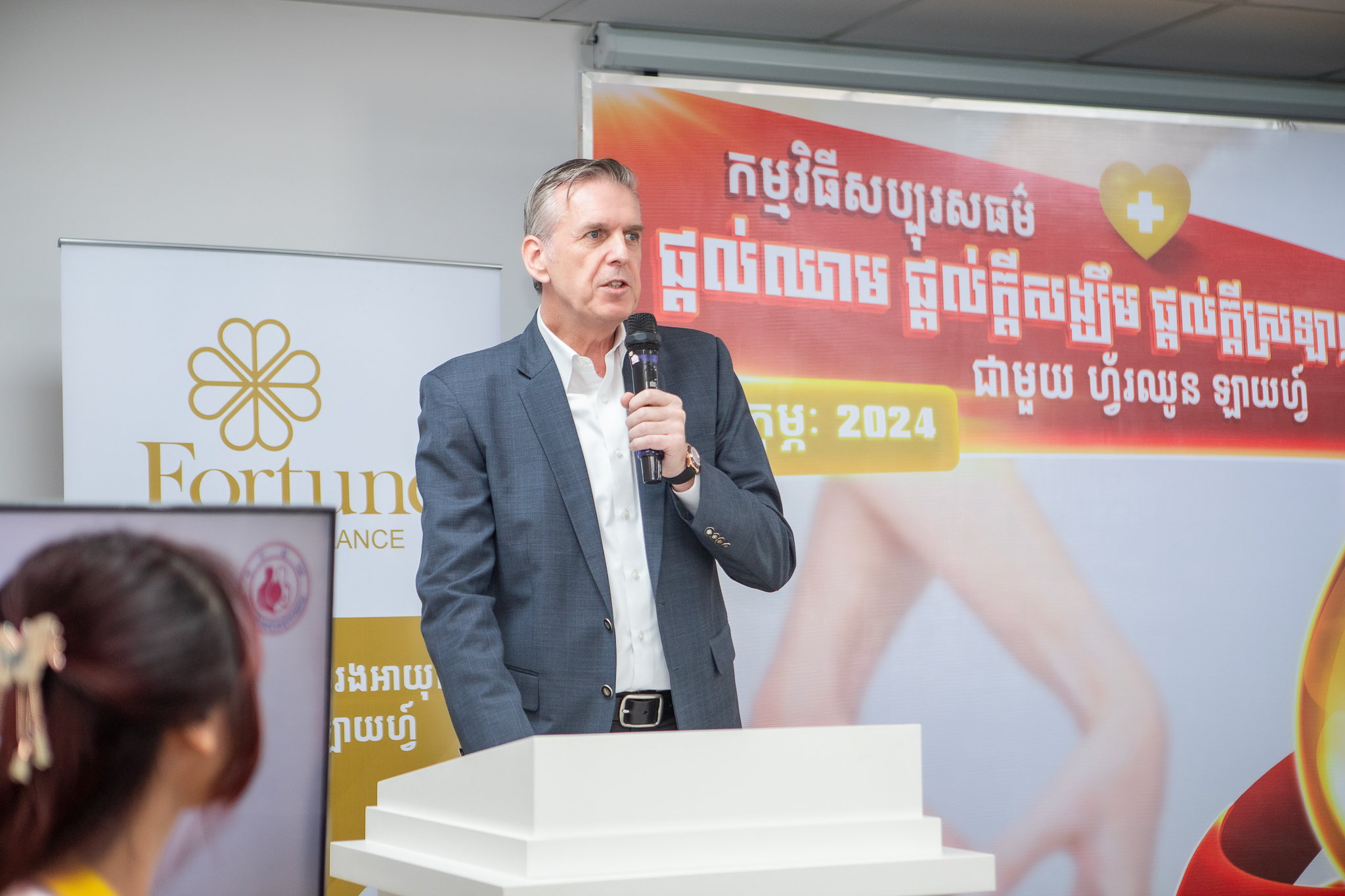 ក្រោមវត្តមានលោក Jan Arend Wes អគ្គនាយកប្រតិបត្តិរបស់ក្រុមហ៊ុនធានារ៉ាប់រងអាយុជីវិត ហ្វ័រឈូន ឡាយហ្វ៍, លោកស្រី វេជ្ជបណ្ឌិតឯកទេស ហេង សុខចំរើន អនុប្រធានមជ្ឈមណ្ឌលជាតិផ្តល់ឈាម, ថ្នាក់ដឹកនាំ បុគ្គលិក អតិថិជន សប្បុរសជន ជាពិសេសដៃគូអាជីវកម្ម និងសាធារណៈជនមកពីគ្រប់មជ្ឈដ្ឋានផងដែរ។