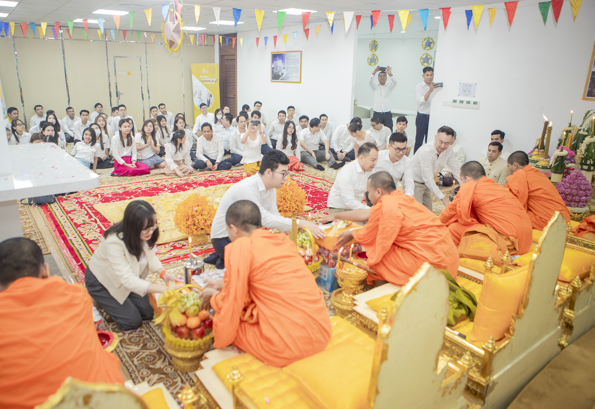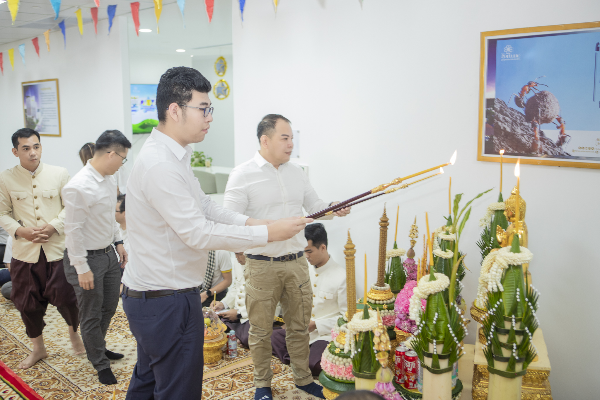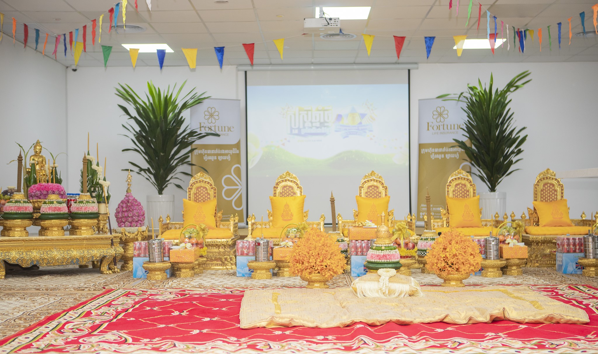 នាព្រឹកថ្ងៃពុធ ទី៩ ខែមេសា ឆ្នាំ២០២៥ ម្សិលមិញនេះ ក្រុមហ៊ុនធានារ៉ាប់រងអាយុជីវិត ហ្វ័រឈូន ឡាយហ្វ៍ បានរៀបចំពិធីសូត្រមន្ត ចម្រើនព្រះបរិត្ត ប្រោះព្រំលើករាសី ស្វាគមន៍ឆ្នាំថ្មី ក្រោមវត្តមានចូលរួមដ៏ខ្ពង់ខ្ពស់ពីថ្នាក់ដឹកនាំប្រចាំប្រទេសកម្ពុជា និង តៃវ៉ាន់  និងបុគ្គលិកគ្រប់ផ្នែករបស់ក្រុមហ៊ុនធានារ៉ាប់រងអាយុជីវិត ហ្វ័រឈូន ឡាយហ្វ៍ ដើម្បីទទួលពរជ័យក្នុងឱកាសបុណ្យចូលឆ្នាំថ្មីប្រពៃណីជាតិខ្មែរ ឆ្នាំម្សាញ់ សប្តស័ក ព.ស.២៥៦៩ ដែលនឹងចូលមកដល់នៅថ្ងៃទី១៤ ដល់ ១៦ ខែមេសា ឆ្នាំ២០២៥។ ក្នុងឱកាសបុណ្យចូលឆ្នាំថ្មីប្រពៃណីជាតិខ្មែរខាងមុខនេះ យើងខ្ញុំតំណាងឲ្យក្រុមហ៊ុនធានារ៉ាប់រងអាយុជីវិត ហ្វ័រឈូន ឡាយហ្វ៍ សូមគោរពជូនពរអតិថិជន និងប្រជាជនខ្មែរគ្រប់ទិសទី ជួបប្រទះតែសេចក្តីសុខ សុភមង្គល ជោគជ័យគ្រប់ភារកិច្ច និង សុវត្ថិភាពរាល់ការធ្វើដំណើរ។