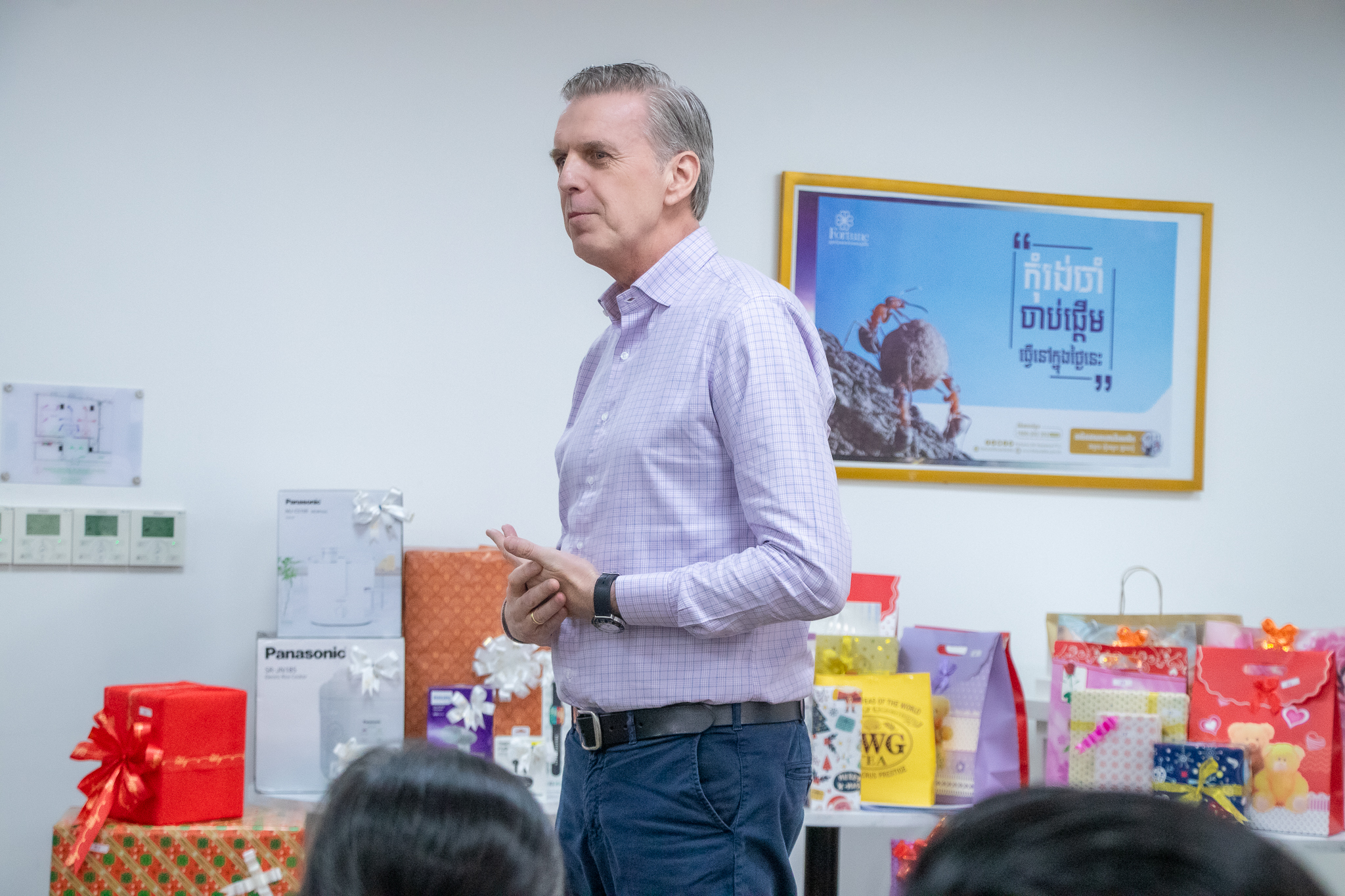 កម្រងរូបភាពស្អាតៗនាចុងឆ្នាំ2023 របស់ថ្នាក់ដឹកនាំ និងបុគ្គលិកគ្រួសារ ហ្វ័រឈូន ឡាយហ្វ៍ ដើម្បីស្វាគមន៍ឆ្នាំថ្មី ឆ្នាំ2024 ដែលនឹងខិតជិតមកដល់ក្នុងពេលឆាប់ៗនេះ។ លោក Jan Arend Wes អគ្គនាយកប្រតិបត្តិ របស់ក្រុមហ៊ុនធានារ៉ាប់រងអាយុជីវិត ហ្វ័រឈូន ឡាយហ្វ៍ បានចែករំលែកពីការវិវត្តន៍គ្រប់ផ្នែករបស់ក្រុមហ៊ុនក្នុងឆ្នាំ2023 នេះ ក៏ដូចជាយុទ្ធសាស្រ្តស្នូលសម្រាប់ឆ្នាំថ្មីខាងមុខផងដែរ។ បន្ថែមពីនេះទៀត ក៏មានកម្មវិធីកម្សាន្តសប្បាយដូចជា កម្មវិធីប្ដូរកាដូទៅវិញទៅមក ការចាប់រង្វាន់ រួមទាំងការញុំាអាហារសម្រន់ជុំគ្នាយ៉ាងឆ្ងាញ់ពិសារដែលជាអនុស្សាវរីយ៍ល្អៗ និងដើម្បីបង្កើនទំនាក់ទំនងរវាងបុគ្គលិកគ្រប់ជាន់ថ្នាក់ឲ្យកាន់តែមានភាពស្និតស្នាលថែមមួយកម្រិតទៀត។ នៅក្នុងឆ្នាំ2024 ខាងមុខនេះ ក្រុមហ៊ុនធានារ៉ាប់រងអាយុជីវិត ហ្វ័រឈូន ឡាយហ្វ៍ នឹងនៅតែបន្តបេសកកម្មផ្ដល់ការការពារផ្នែកហិរញ្ញវត្ថុជូនគ្រួសារកម្ពុជាទូទាំងប្រទេស និងធានាថាពួកគាត់នឹងទទួលបានសុវត្ថិភាពផ្នែកហិរញ្ញវត្ថុយ៉ាងពិតប្រាកដ។