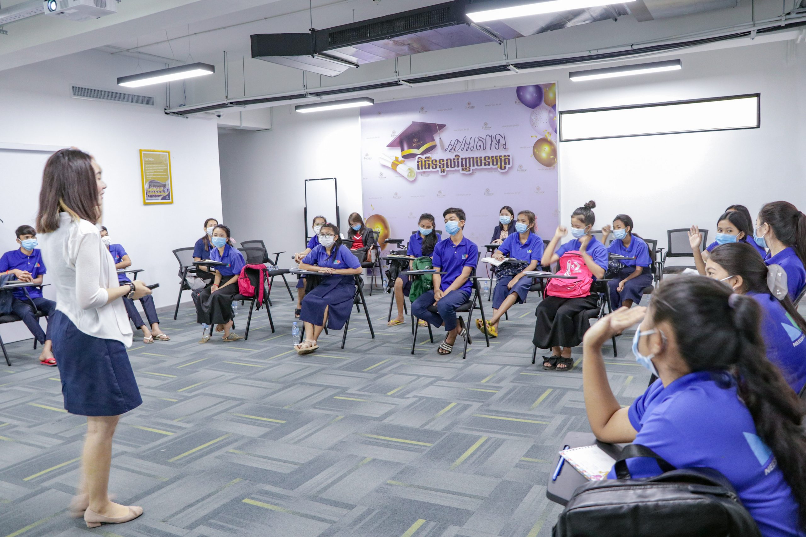 ជាផ្នែកមួយនៃកម្មវិធីហ្វ័រឈូន ឡាយហ្វ៍ នៅជាមួយសហគមន៍ យើងមានកិត្តិយសដែលបានរៀបចំសិក្ខាសាលាស្តីពីអាជីពការងារសម្រាប់សិស្សានុសិស្សដែលរៀននៅអនុវិទ្យាល័យចំនួន ១៦ នាក់មកពីអង្គការមូលនិធិកុមារកម្ពុជា (CCF)។