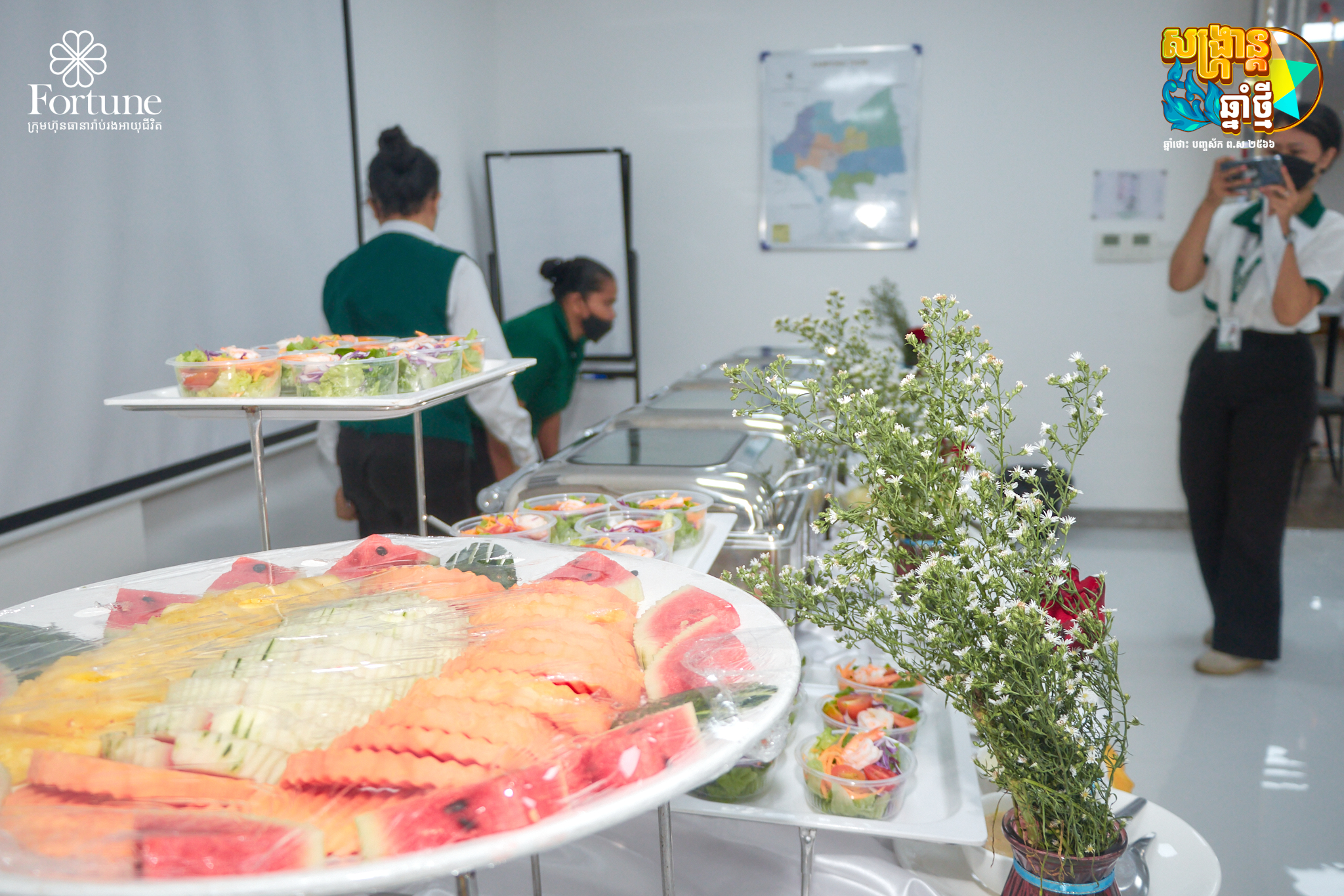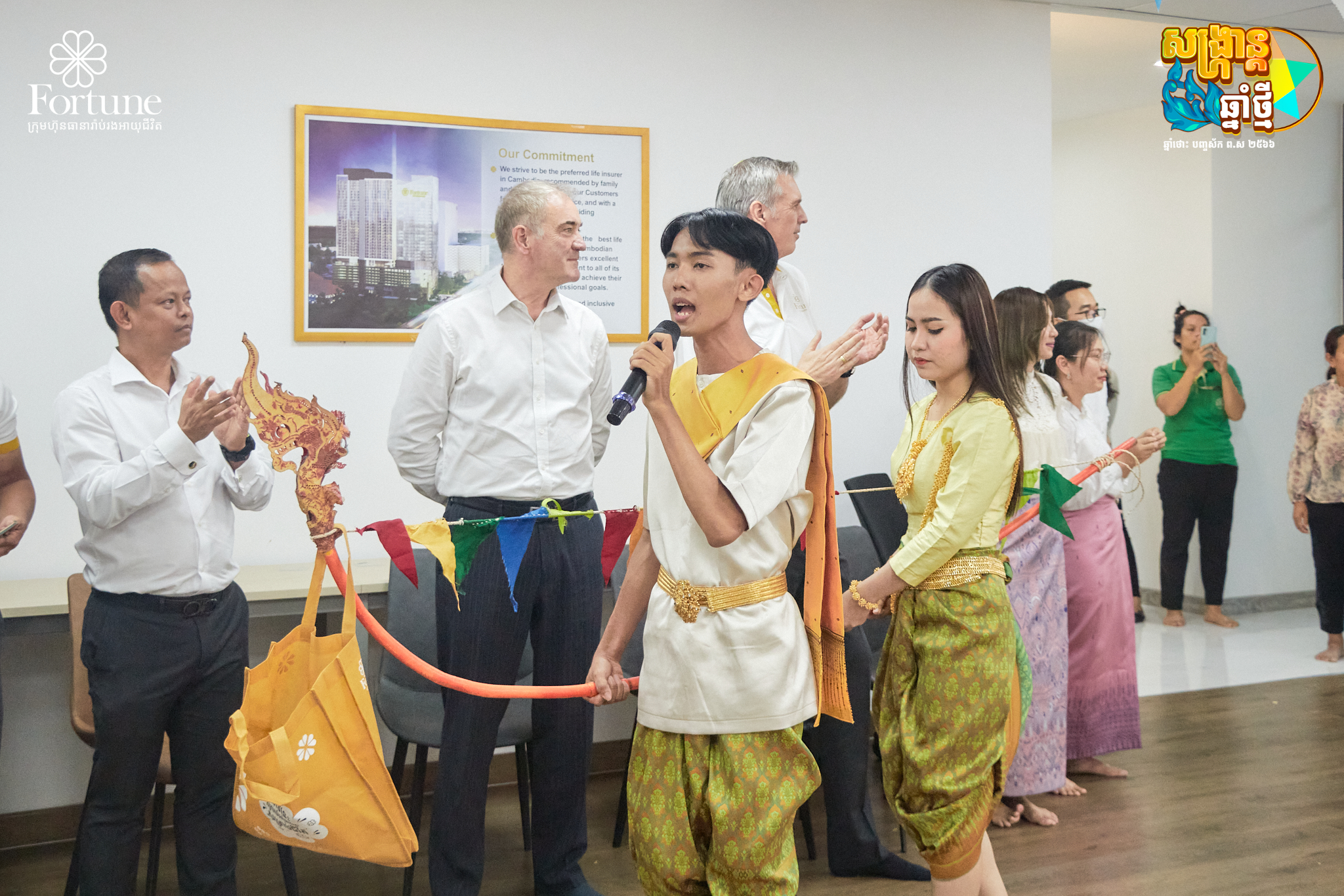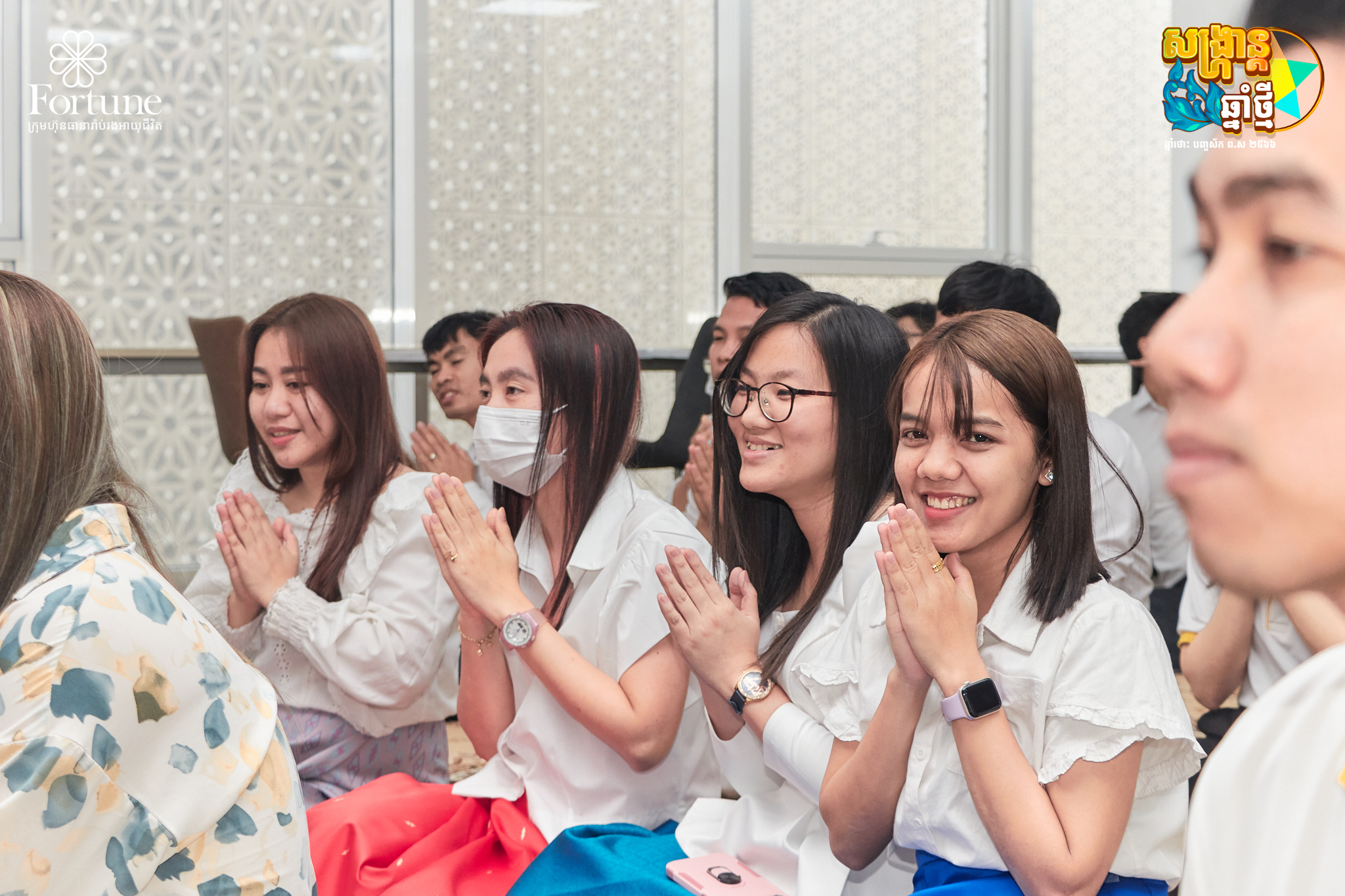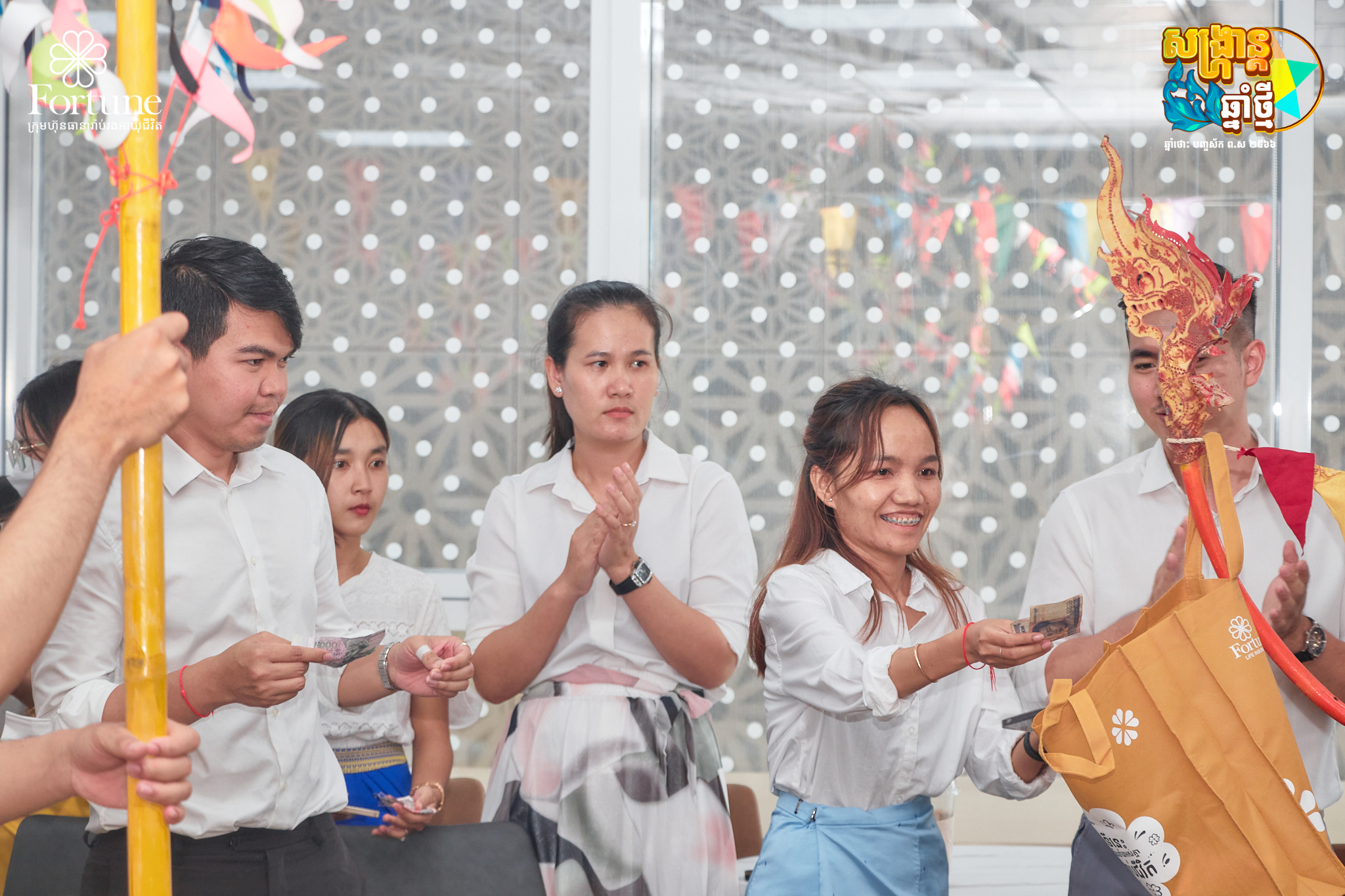 ដើម្បីចូលរួមស្វាគមន៍សង្ក្រាន្តឆ្នាំថ្មីនាពេលខាងមុខនេះ ថ្នាក់ដឹកនាំ និងបុគ្គលិកគ្រប់ជាន់ថ្នាក់របស់ក្រុមហ៊ុនធានារ៉ាប់រងអាយុជីវិត ហ្វ័រឈូន ឡាយហ្វ៍ បានរៀបចំពិធីសូត្រមន្ត ប្រោះព្រំ សុំសេចក្តីសុខ សេចក្តីចម្រើន ទទួលយកពរជ័យឆ្នាំថ្មី។ បន្ថែមលើសនេះទៀត ក៏មានល្បែង រាំដណ្តើមកៅអីជាពិសេសការសម្តែងរបាំត្រុដិ ពីក្រុមសិល្បករ សិល្បការិនី ដែលធ្វើអោយកម្មវិធីទាំងមូល កាន់តែអធិកអធមមួយកម្រិតថែមទៀត។ តាមការពិត របាំត្រុដិនេះ គឺជាបុណ្យឆ្លងពីឆ្នាំចាស់ចូលឆ្នាំថ្មី ពីភាពឧបទ្រពចង្រៃ ទៅភាពសម្បូរណ៍ សប្បាយផង។ ពាក្យ ត្រុដិ សំដៅដល់ពេលដែលឆ្នាំចាស់ដាច់ ដើម្បីត្រាច់ផ្លាស់ចូលឆ្នាំថ្មី។ នៅចុងកម្មវិធីក៏មានរៀបចំជាអាហារសម្រន់ដ៏ឆ្ងាញ់ពិសារ ដើម្បីជាឱកាសជួបជុំ ញ៉ាំអាហារជុំគ្នាផងដែរ។