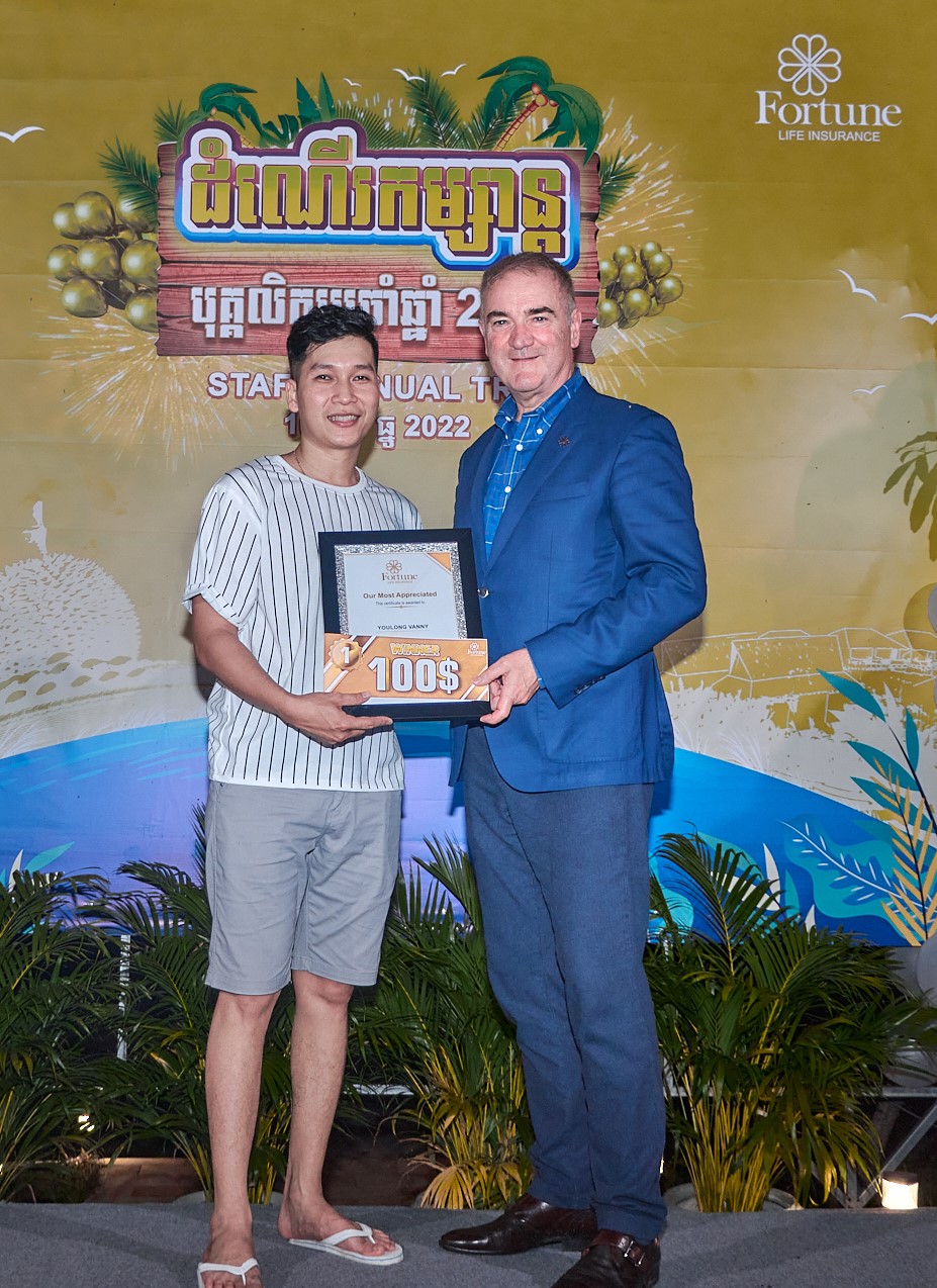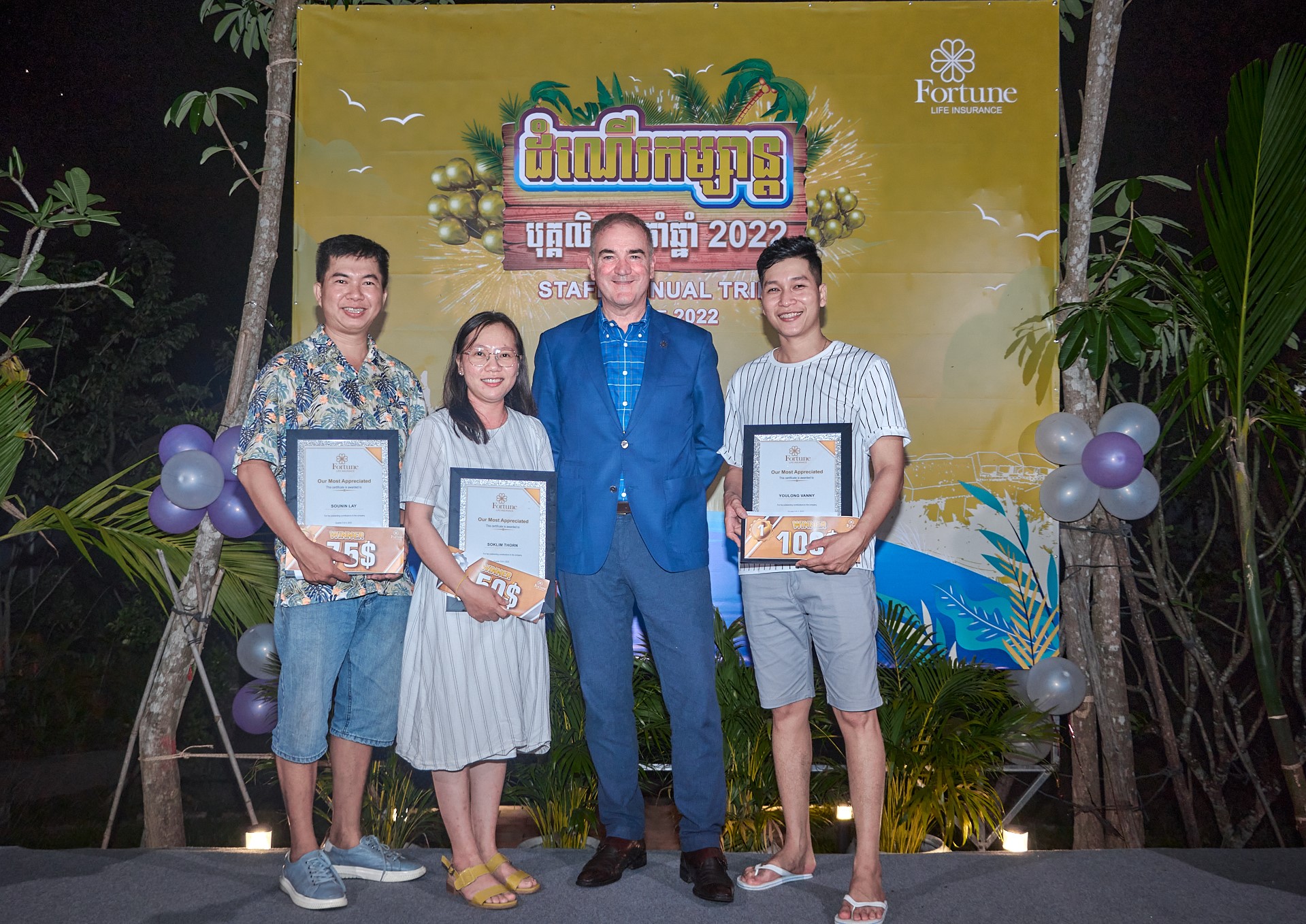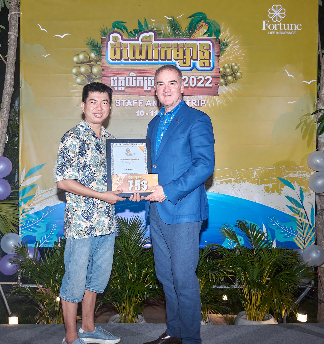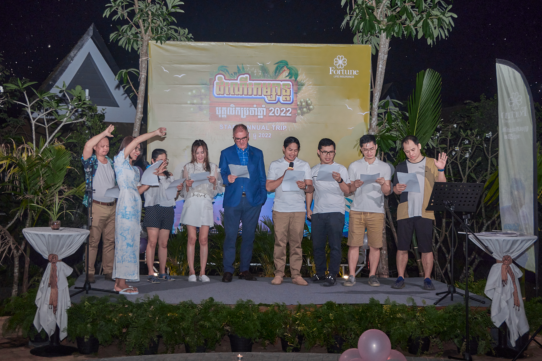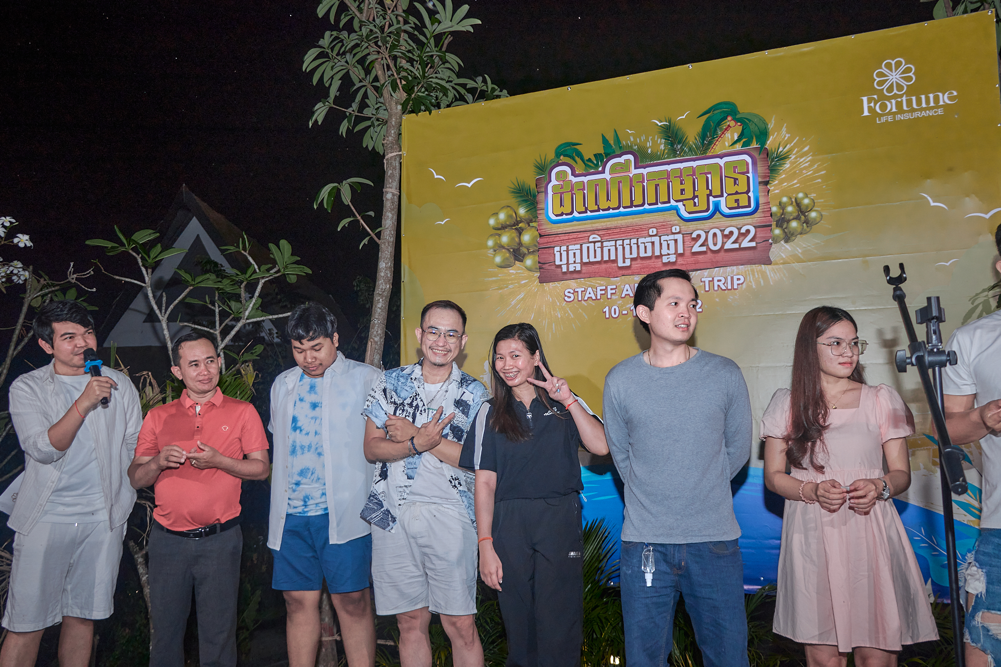រូបភាពទាំងស្រុងពីដំណើរកម្សាន្តប្រចាំឆ្នាំ២០២២ របស់បុគ្គលិក និងថ្នាក់ដឹកនាំក្រុមហ៊ុនធានារ៉ាប់រងអាយុជីវិត ហ្វ័រឈូន ឡាយហ្វ៍ ទៅកាន់ខេត្តកំពត រយៈពេល 1យប់ 2ថ្ងៃ កាលពីពេលថ្មីៗកន្លងទៅនេះ។ កម្មវិធីទាំងមូលបានប្រារព្ធទៅយ៉ាងរលូន អមជាមួយនឹងរបៀបវារៈ (Agenda) ជាច្រើនដែលមានដូចជា​ សកម្មភាពប្រកួតប្រជែងជាក្រុម (Team Building) ដែលបានបង្ហាញពីទំនួលខុសត្រូវក្នុងការសហការគ្នាជាក្រុម មានទំនាក់ទំនងគ្នាល្អជាក្រុម ស្តាប់និងចែករំលែកគ្នាទៅវិញទៅមក ដើម្បីសម្រេចគោលដៅដែលពួកយើងចង់បាន។ បន្ថែមលើសនេះទៀត នាពេលរាត្រីក៏មានការរៀបចំអាហារពេលល្ងាចដ៏ឆ្ងាញ់ពិសារនៅមុខអាងហែលទឹក កម្មវិធីចែកកាដូដោយអត់ដឹងខ្លួន (Surprised gift) កម្មវិធីប្រកាសលទ្ធផលសម្រាប់បុគ្គលិក 3រូប ដែលទទួលបានការអរគុណច្រើនជាងគេ (Most Appreciation) និងកម្មវិធីកម្សាន្តសប្បាយៗផ្សេងទៀតផងដែរ។