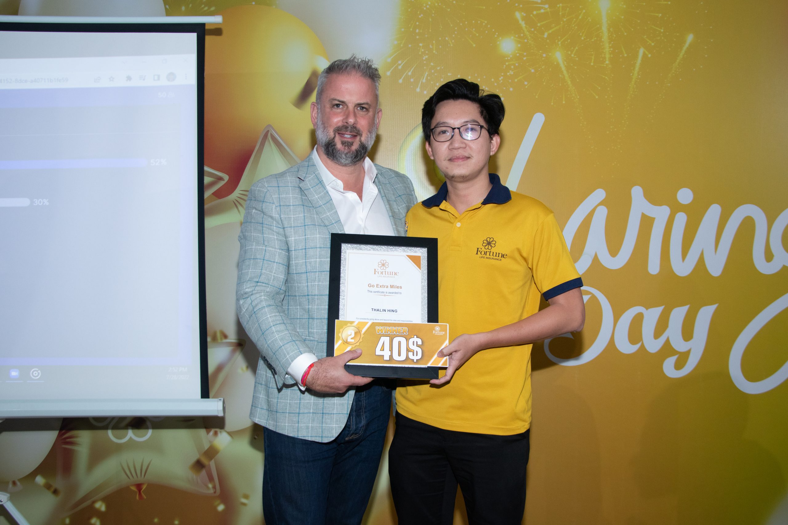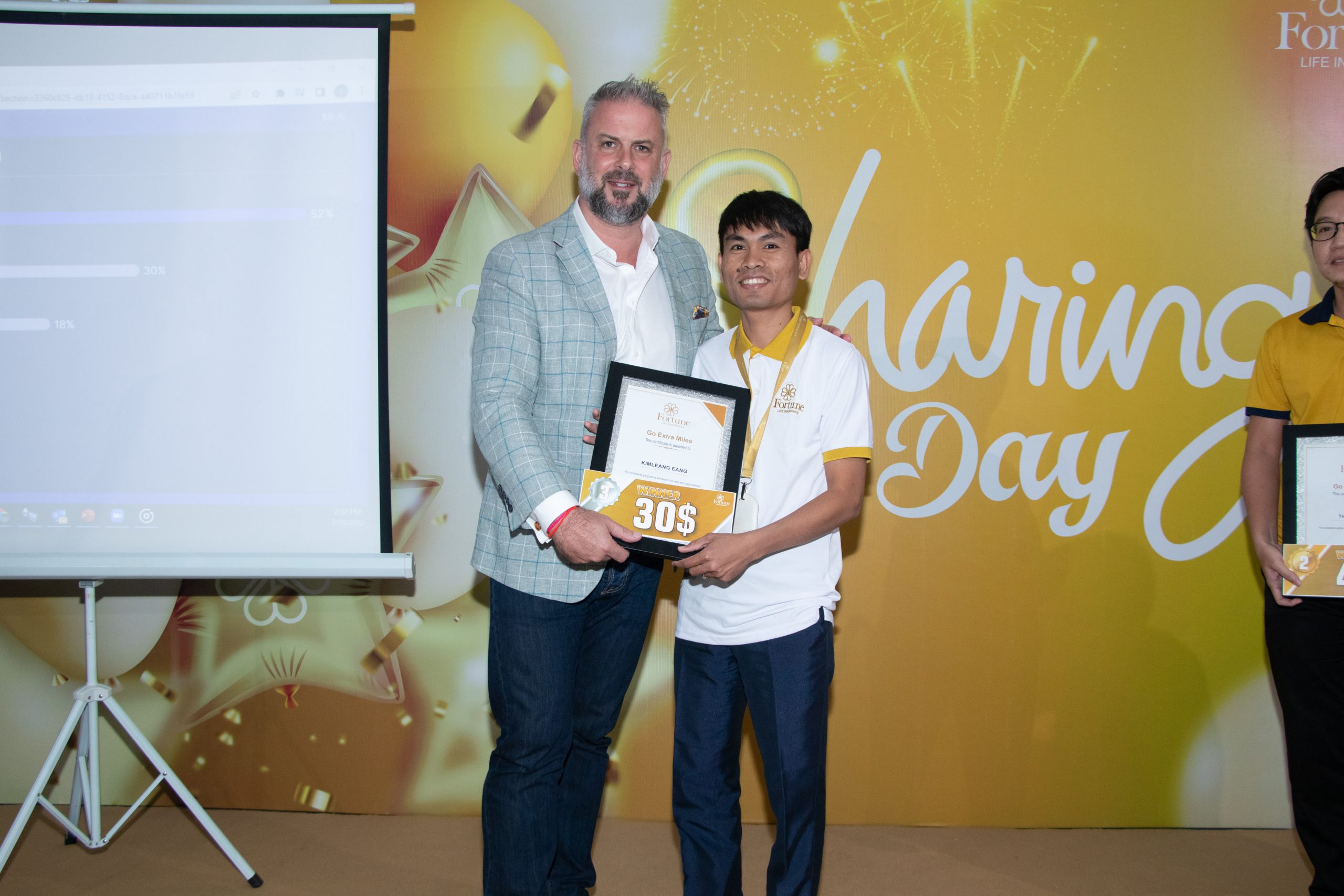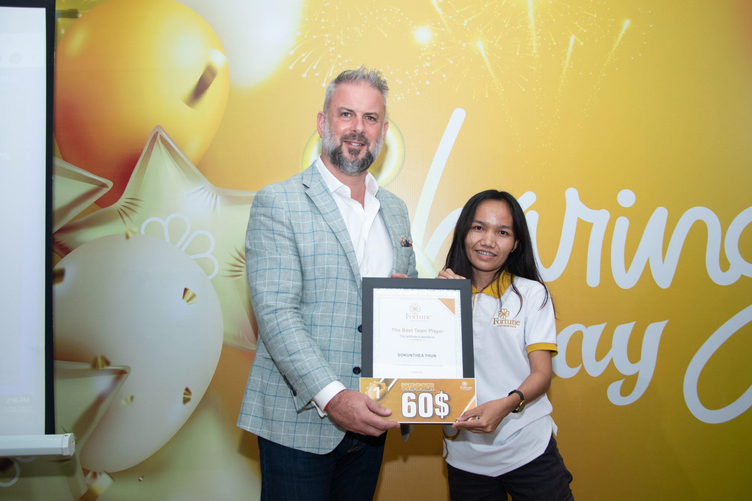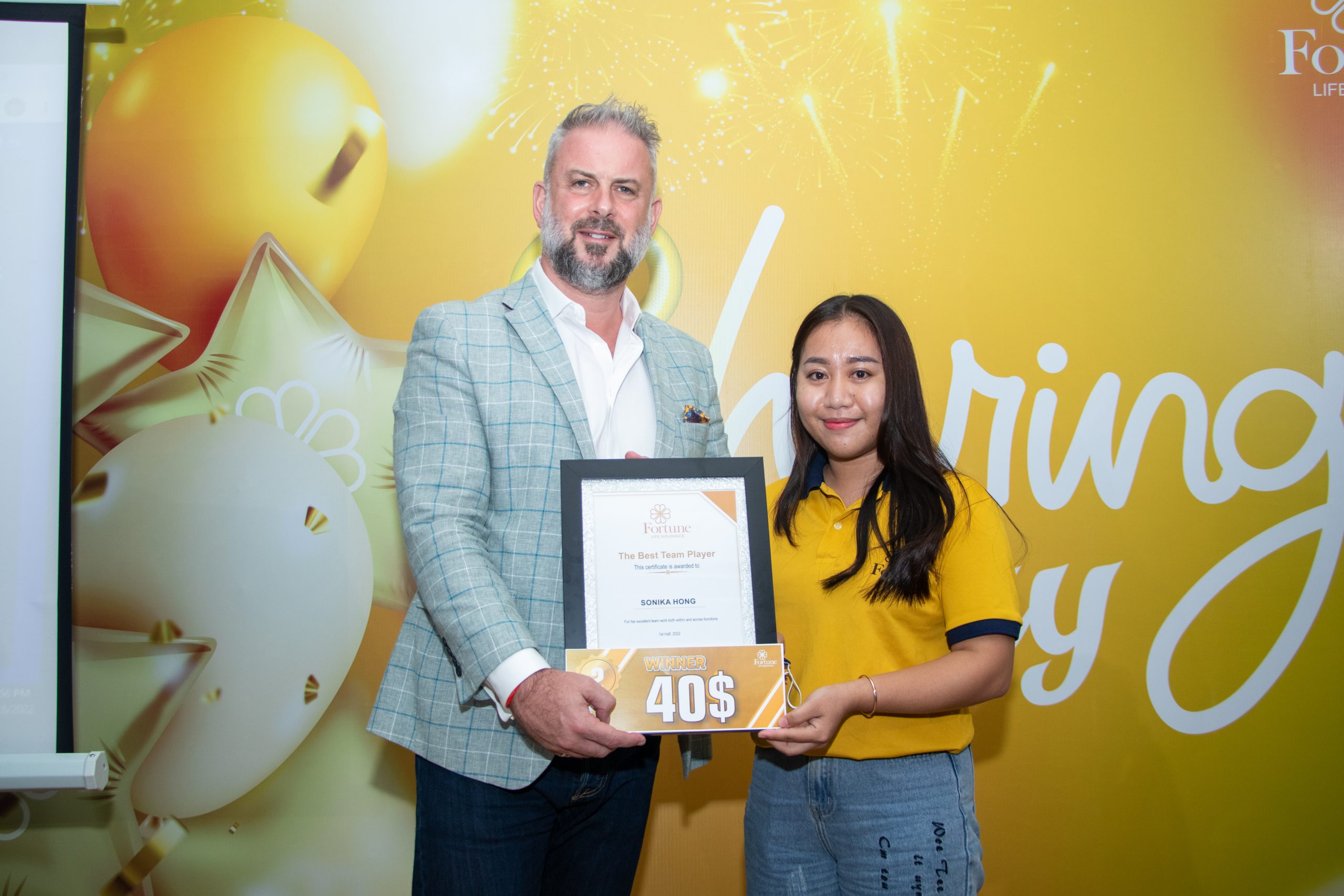 នាពាក់កណ្តាលឆ្នាំ ២០២២ នេះ ក្រុមហ៊ុនធានារ៉ាប់រងអាយុជីវិត ហ្វ័រឈូន ឡាយហ្វ៍ បានធ្វើការប្រគល់រង្វាន់ជ័យលាភីជូនដល់បុគ្គលិកឆ្នើម (Our Most Appreciated) ប្រចាំឆមាសទី១ និងជូនលិខិតសរសើរសម្រាប់បុគ្គលិកបំពេញការងារចាប់ពី ២ឆ្នាំ ឡើងទៅ អមជាមួយសកម្មភាពសហការជាក្រុម រួមនឹងកម្មវិធីកម្សាន្តសប្បាយរីករាយជាច្រើន។ បុគ្គលិកទាំងអស់ប្តេជ្ញាចិត្ត នឹងបន្តបេសកកម្មរៀងៗខ្លួនដើម្បីផ្តល់នូវសុខមាលភាពហិរញ្ញវត្ថុជូនបងប្អូនប្រជាជនកម្ពុជាទូទាំងប្រទេស។
