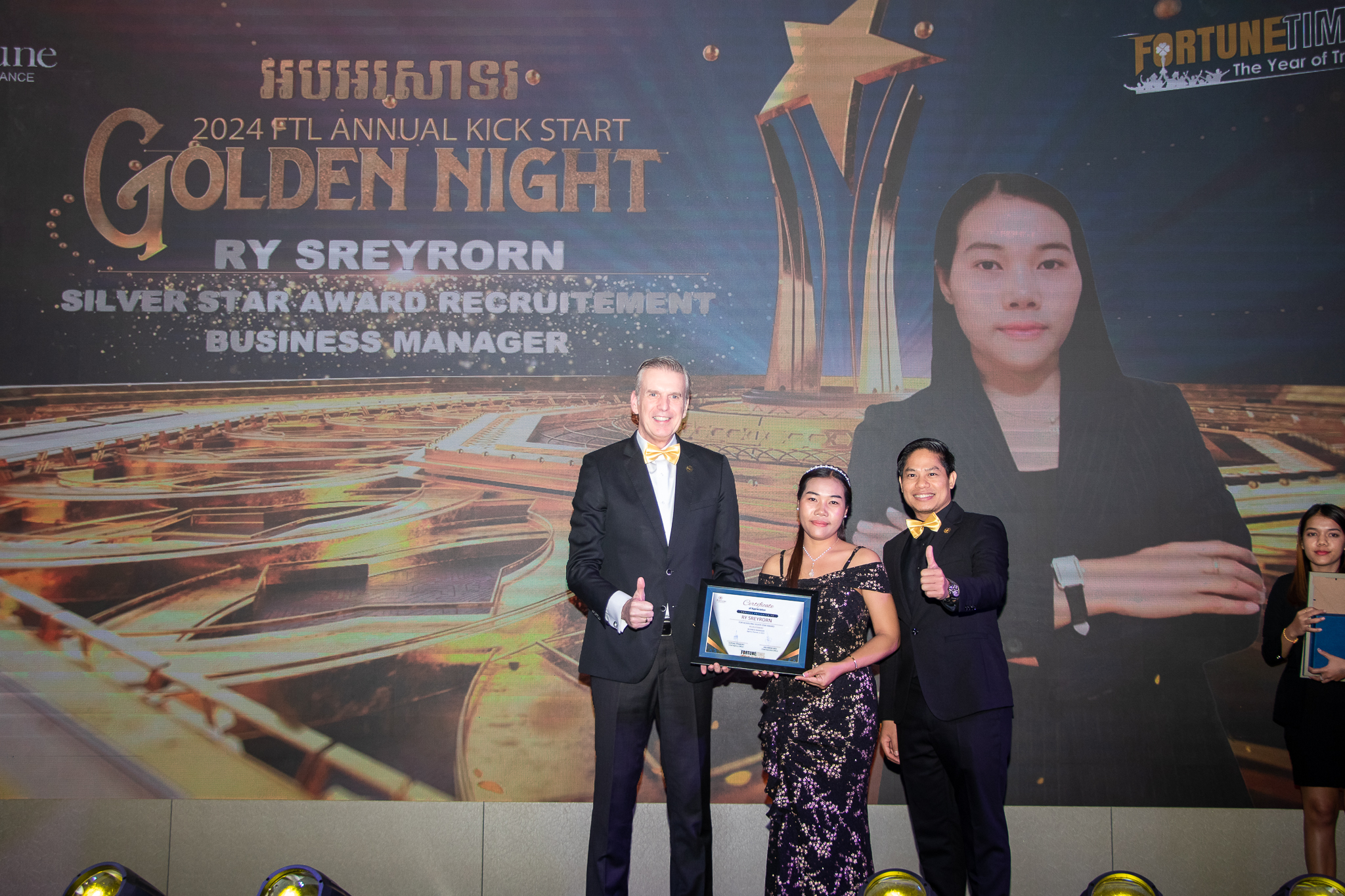 In addition, the delicious dinner provided by Fairfield by Marriott Phnom Penh and during ๐†๐Ž๐‹๐ƒ๐„๐ ๐๐ˆ๐†๐‡๐“ also held an award session for outstanding financial consultants, outstanding managers, and agency development managers, as well as congratulations to outstanding financial consultants, outstanding business managers, and outstanding agency development managers who won a trip to Malaysia from MEGA FTL FAMILY.