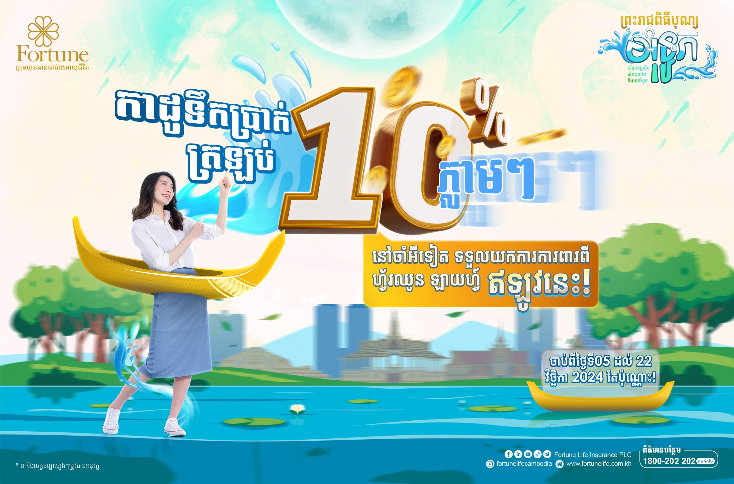 To celebrate upcoming water festival, we are excited to announce customer promotion of Instant 10% Cashback Discount to our new customers who purchase any products of Fortune Life from 5th till 22nd November 2024.